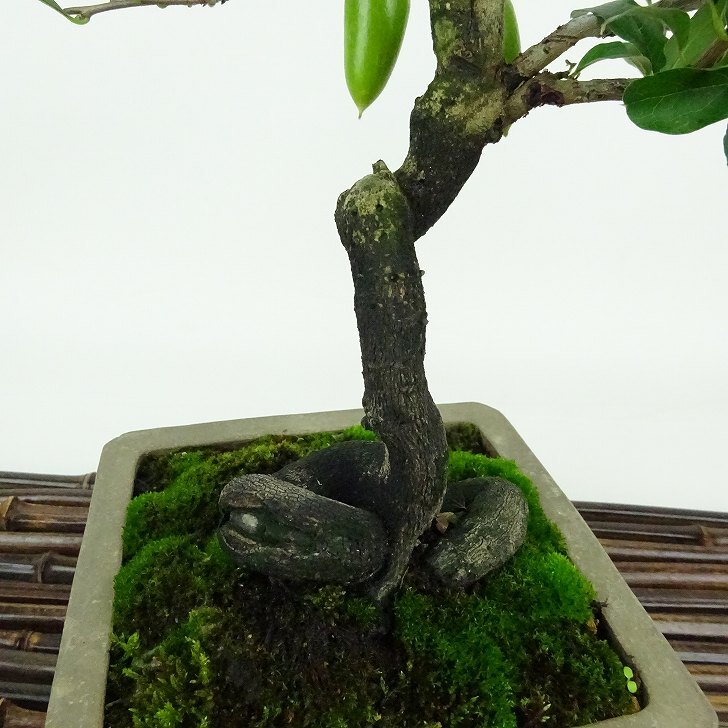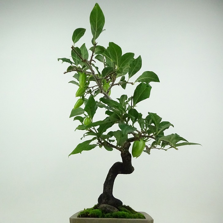 ■植物ですので撮影時期や季節によって剪定などの手入れにより写真から変化がございます。撮影日をご確認のうえ、ご注文ください。 ■翌年の実付きをよくするために葉が落ちた後の11月末~12月にかけて摘果しています。お届けの商品にはロウヤガキの実がない場合がございます。 ■老爺柿の種類は沢山あり、品種の記載がない商品は仕入れの時点で確認ができておりませんので、その旨ご了承のほどお願いいたします。 【老爺柿盆栽】 開花時期は4~5月頃に花を咲かせます。雌雄異株で、実を成らすためには雌木と雄木が必要になります。小さな実が成る渋柿で、実が枝にぶら下がって成る特徴があります。老爺柿は沢山の品種があり、実の形状や色も様々で、丸い形から細長くとがったもの、大きさも大小があり、色合いも赤みを帯びた橙色から黄色、朱赤など豊富にあります。 |