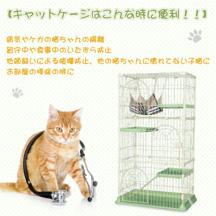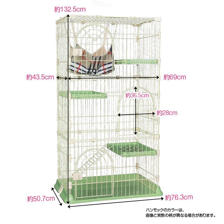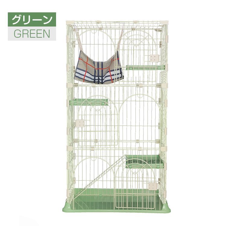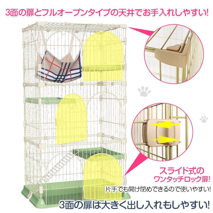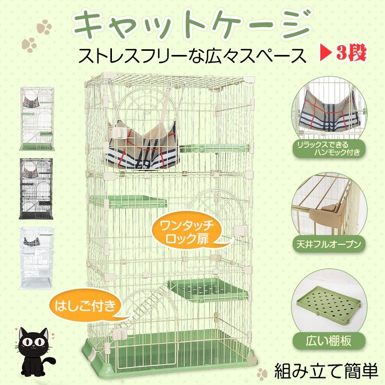 3段キャットケージ ペットケージ ハンモック付き はしご 棚板 ネコ ケージ キャット ネコハウス ペットハウス 3段 ペット用品 猫 pt064