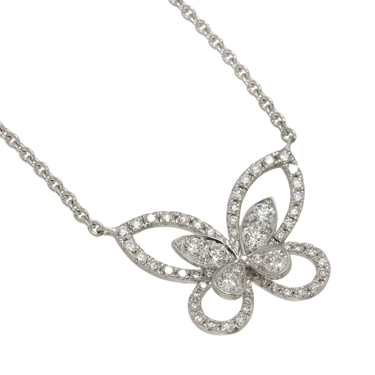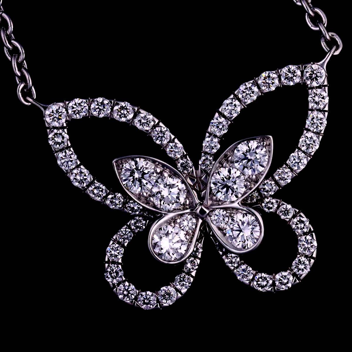 商品概要 | グラフからバタフライ シルエットネックレスです。ホワイトゴールドに煌くダイヤが施され、胸元を華やかに演出してくれます。 |