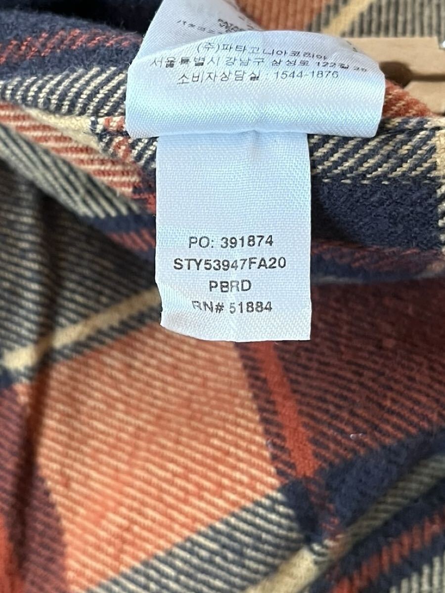 used、中国製、品番53947、FA20、素材はオーガニックコットン100%、お色はPBRD、キャメル系ミックスカラー、サイズM。