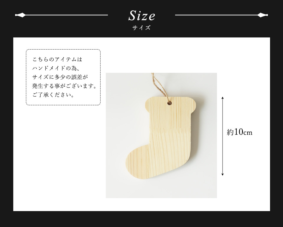 自然素材を生かした、温もりある天然木の風合いが魅力のオーナメント(ソックス)です。