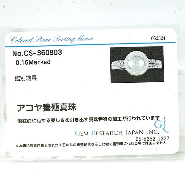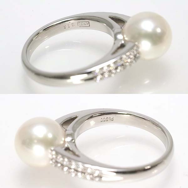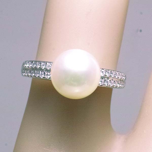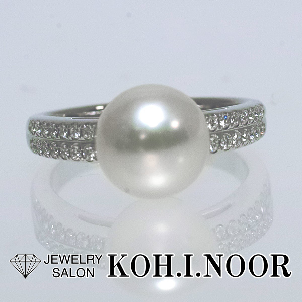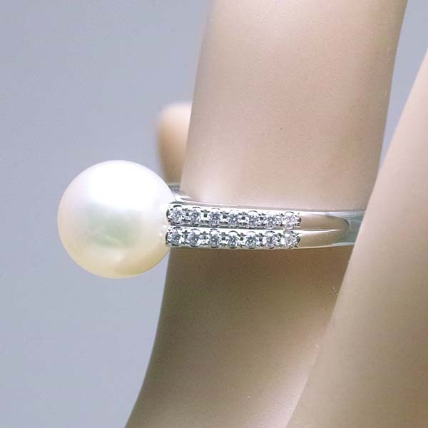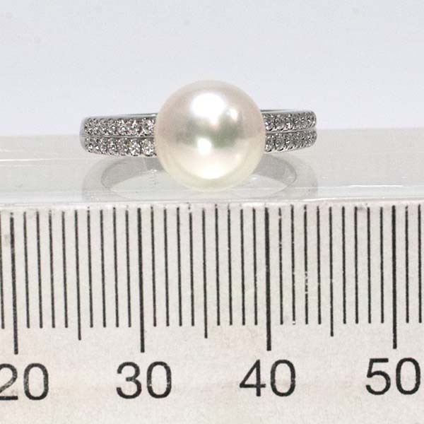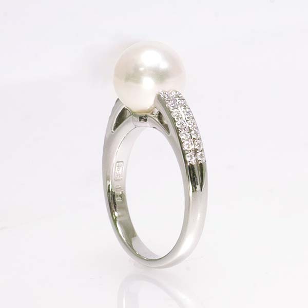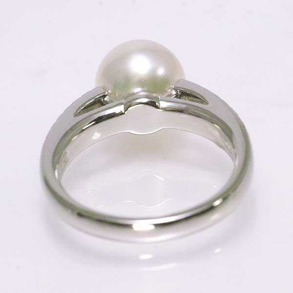 アコヤ真珠にダイヤを添えた和光のプラチナ製ファッションリング。