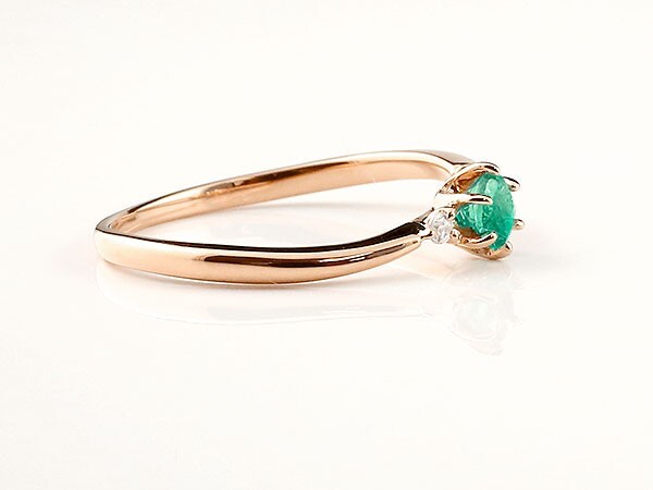 材質 ピンクゴールドk18(品質を保証するk18の刻印)宝石名 エメラルド 3.5mm、天然ダイヤモンド 0.01ct大きさ 最大幅 約 5mm、最小幅 約 1.5mm
