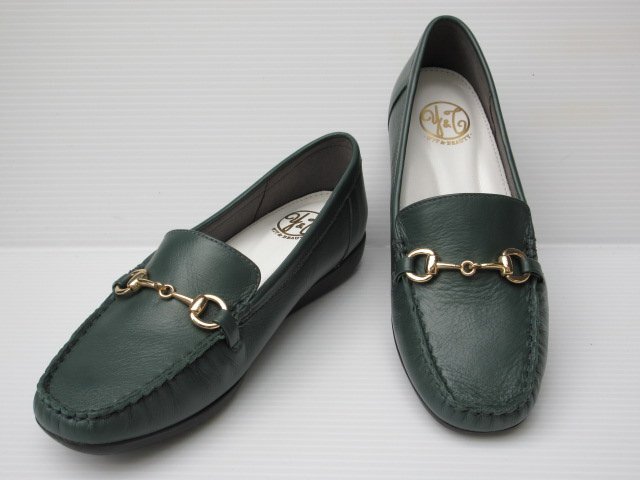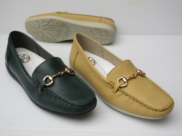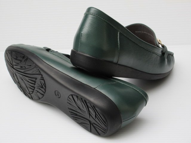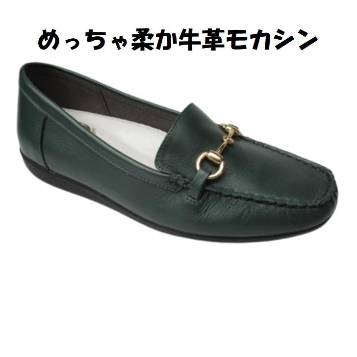 【送料無料】 23.5 YL9305 GREEN 柔らか本革 EEE ピットモカシン 婦人 レディース ローファー スリッポン ドライビング シューズ パンプス