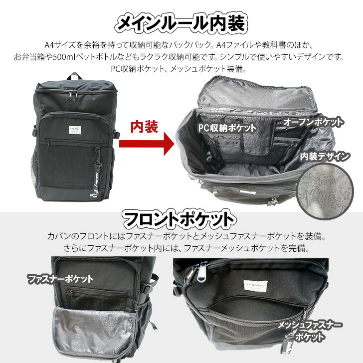 | 商品名 | 15711【001.ブラック】スクエアバックパック 40L[KeithHaring][キースヘリング] |