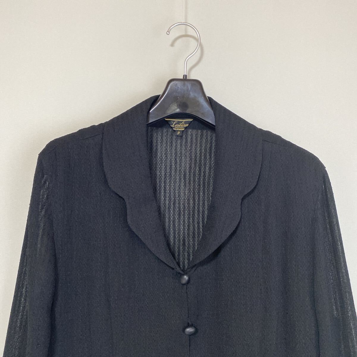 【極美】レリアン ロングカーディガン ジャケット 9 黒 ブラック ストレッチ DMW