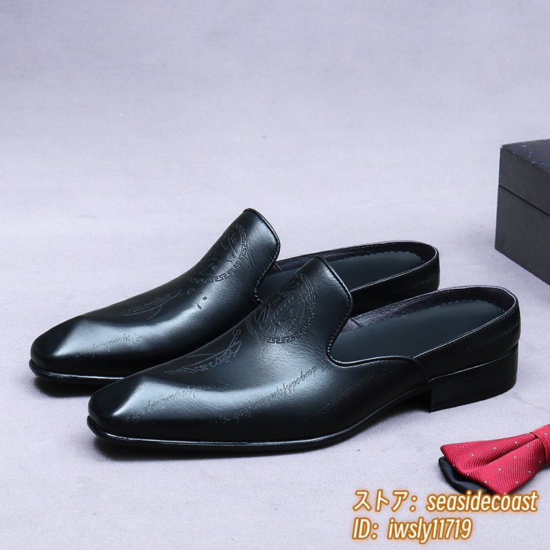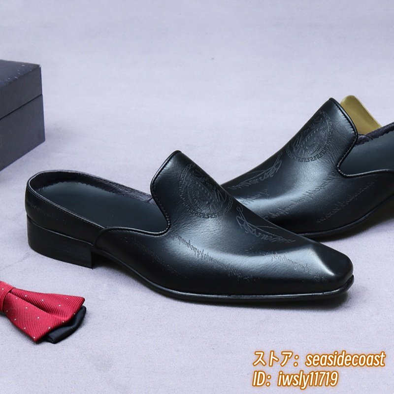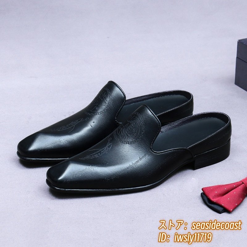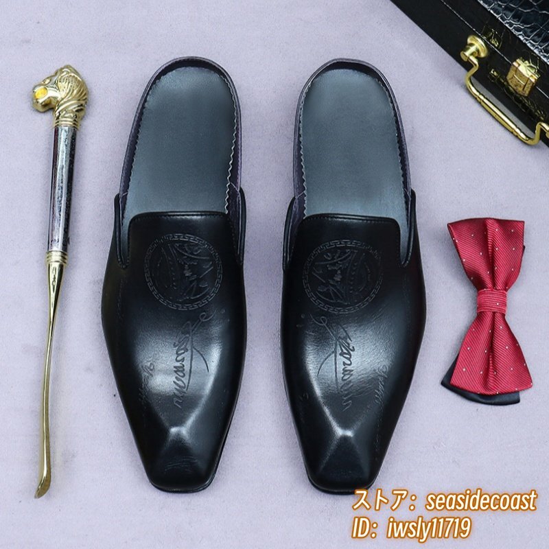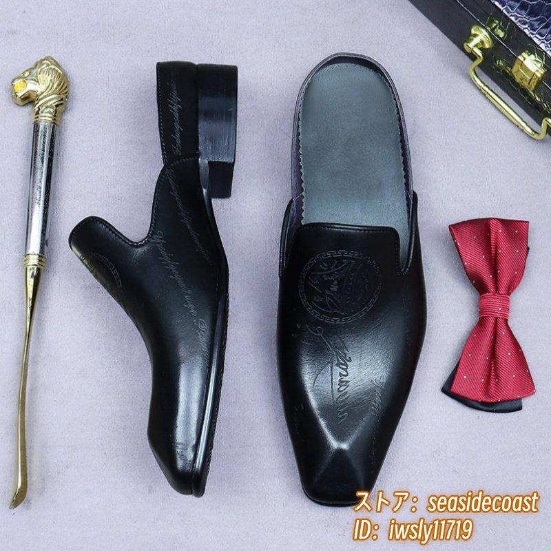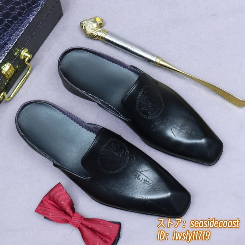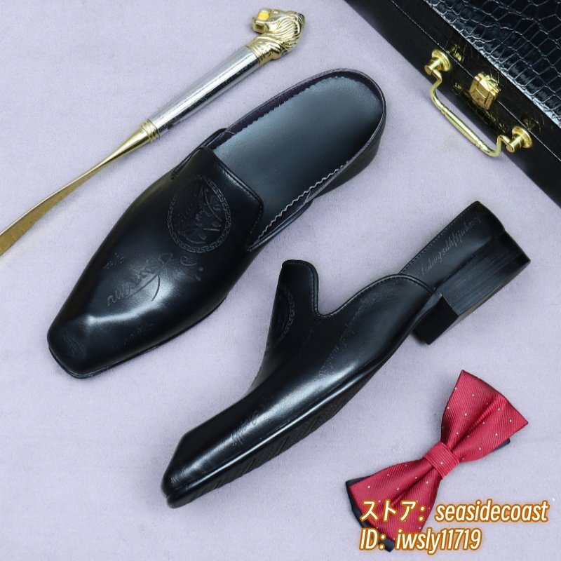 超希少★本革 サンダル メンズ 職人手作り レザーシューズ 高級牛革 ビジネスシューズ 皮靴イギリス 紳士靴 スリッパ 革靴 ブラック 27.0cm