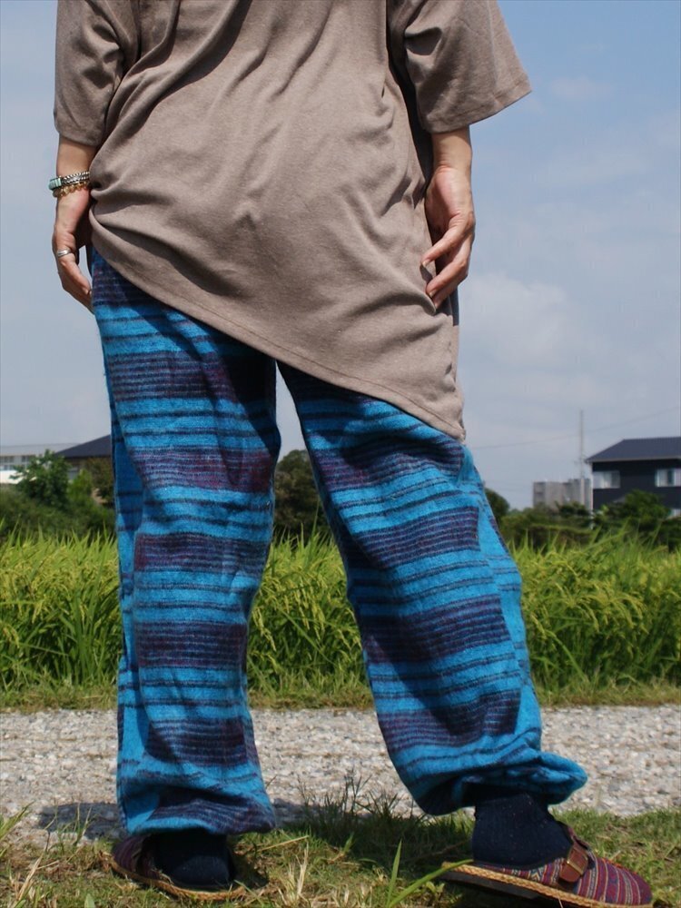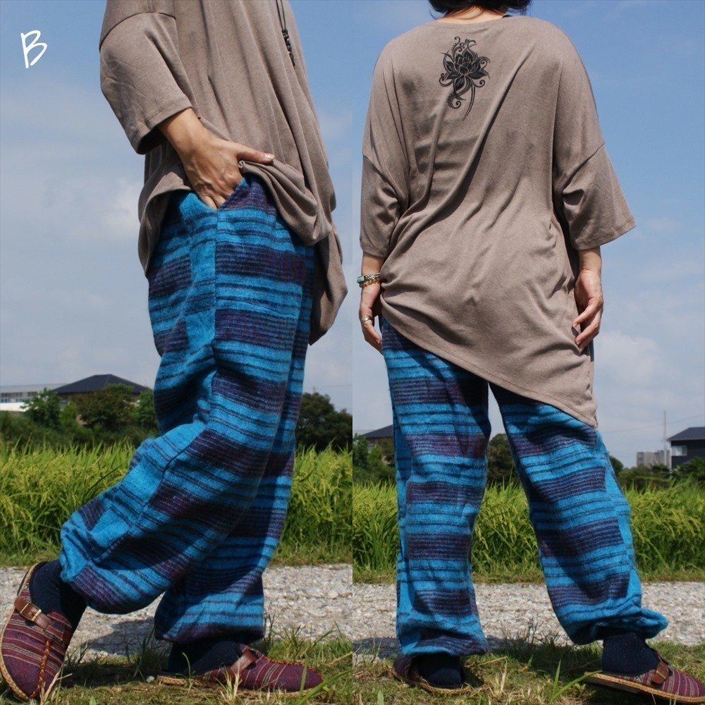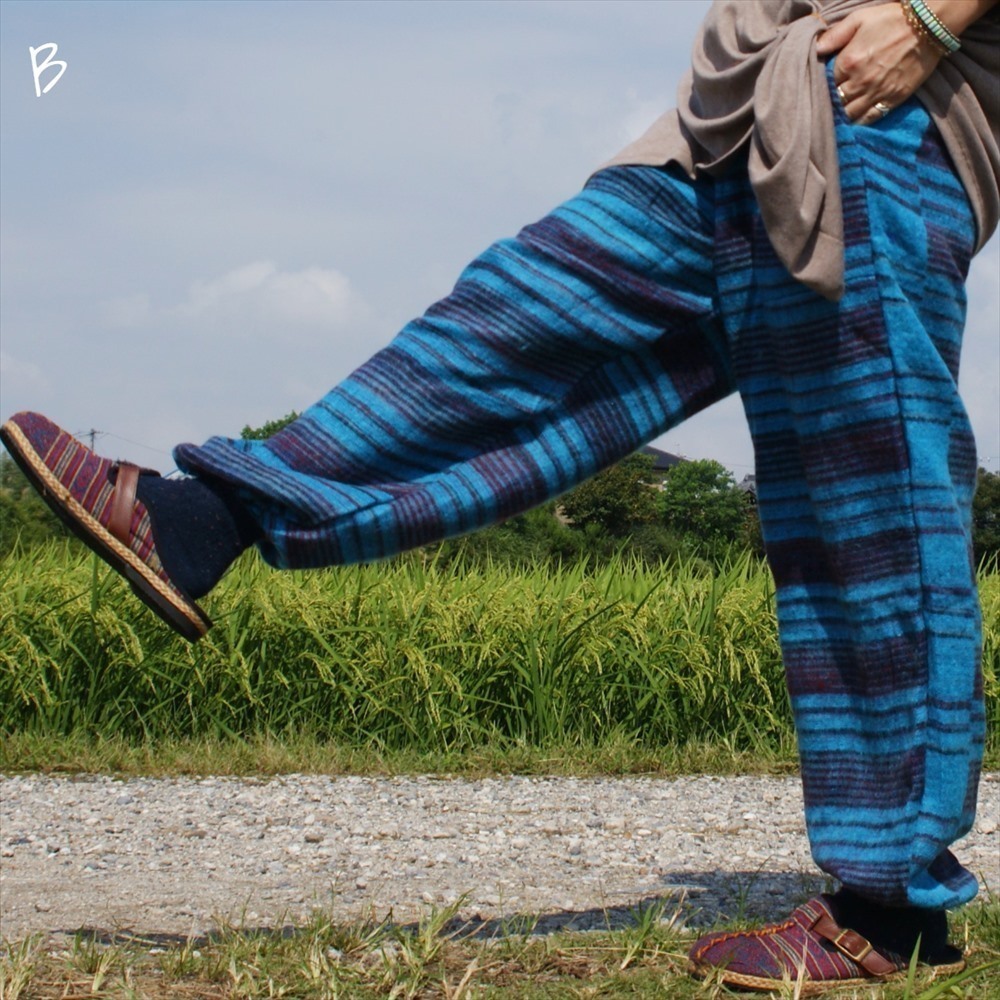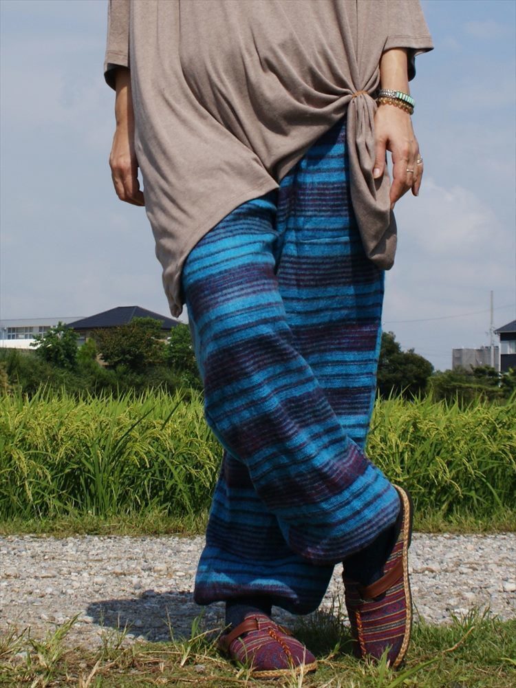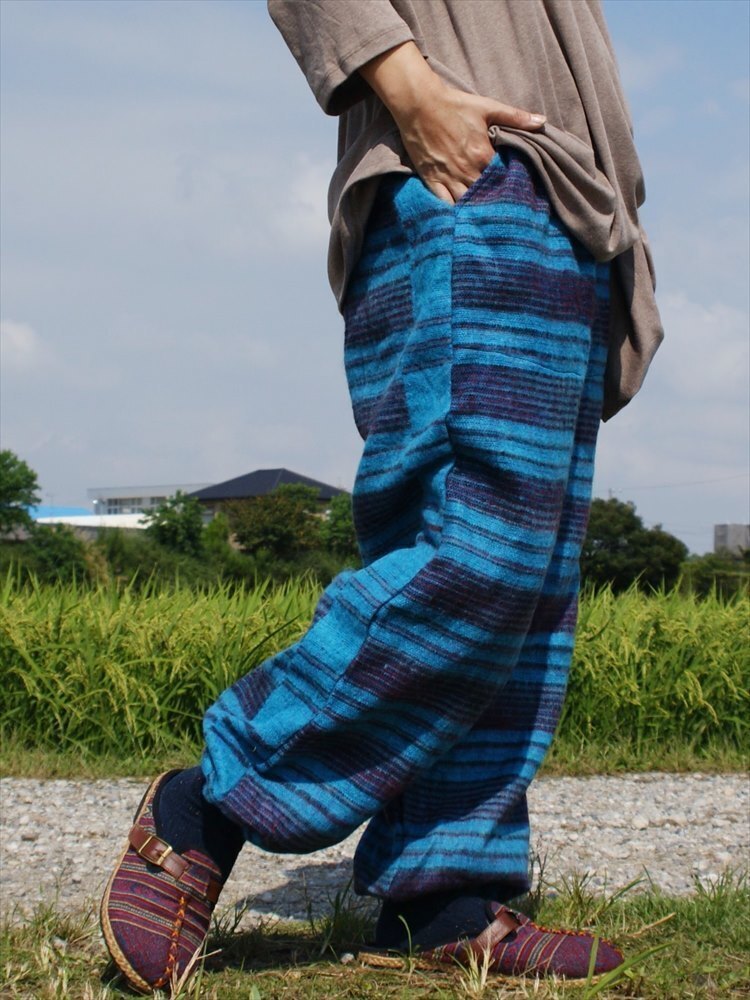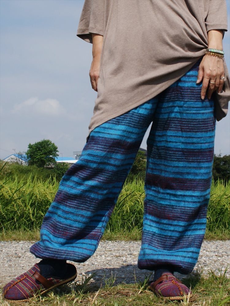 ★エスニック アラジンパンツ ストライプ アクリル 送料込★新品未使用B★ アジアン あったか素材 ウール ルームウェア キャンプ