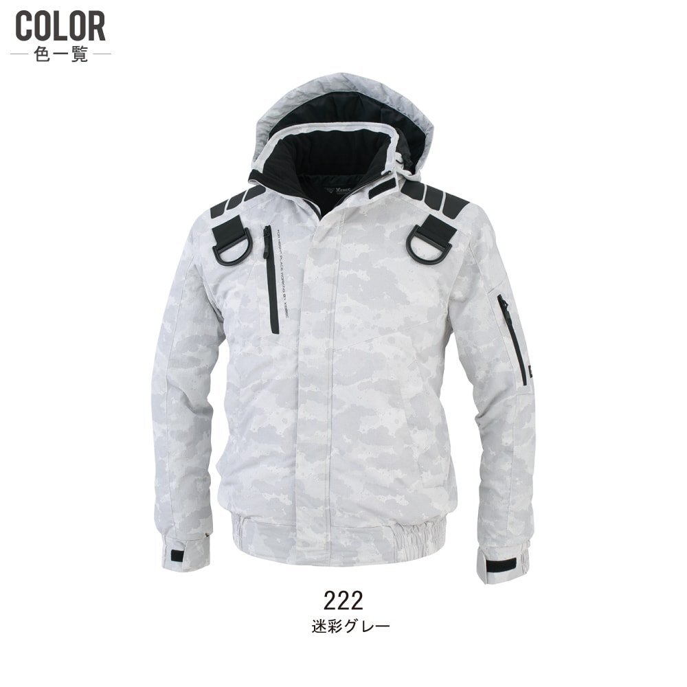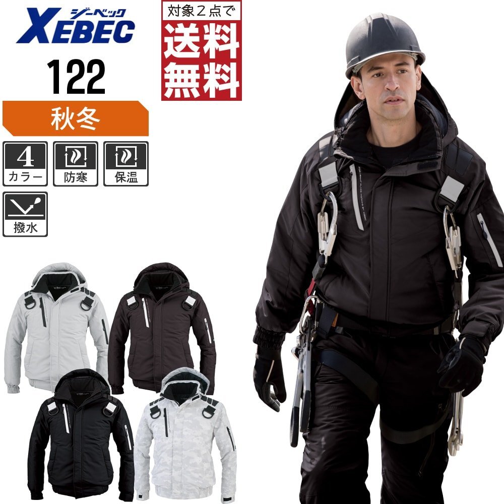 ジーベック 秋冬 中綿 防寒 ブルゾン 撥水加工 脱着式フード フルハーネス対応 122 色:迷彩グレー サイズ:M ★ 対象2点 送料無料 ★