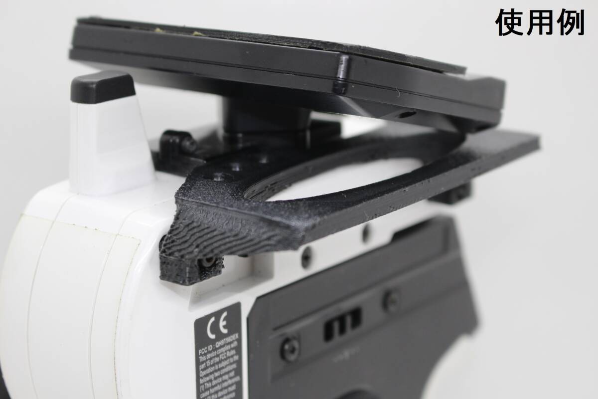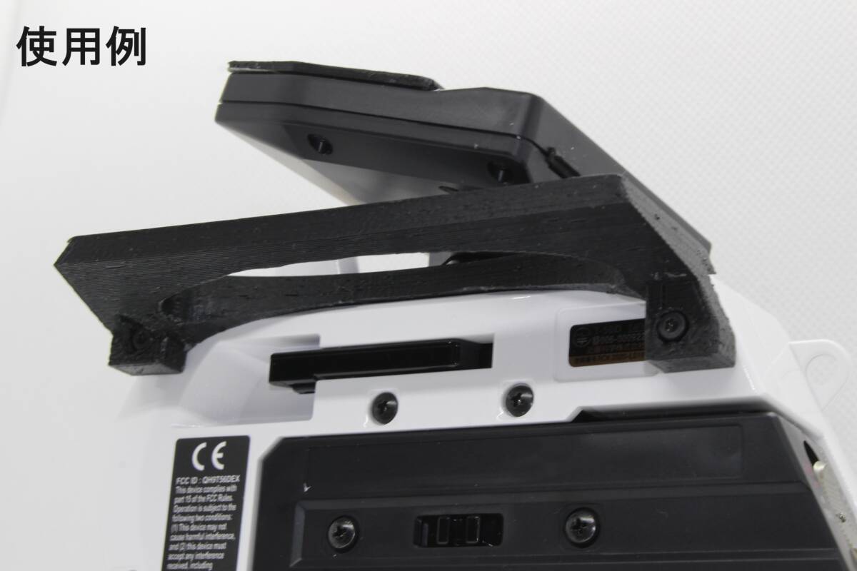 ・取付は送信機背面の上段のビス2本を取り外し2.6x30~35mmのビスで本リヤスタンド