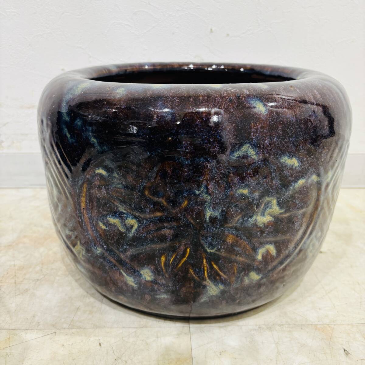 | 火鉢 メダカ鉢 火鉢 金魚鉢 古民具 陶器 水鉢 睡蓮鉢 古道具 茶道具 手あぶり 昭和レトロ アンティーク NC2034M |
