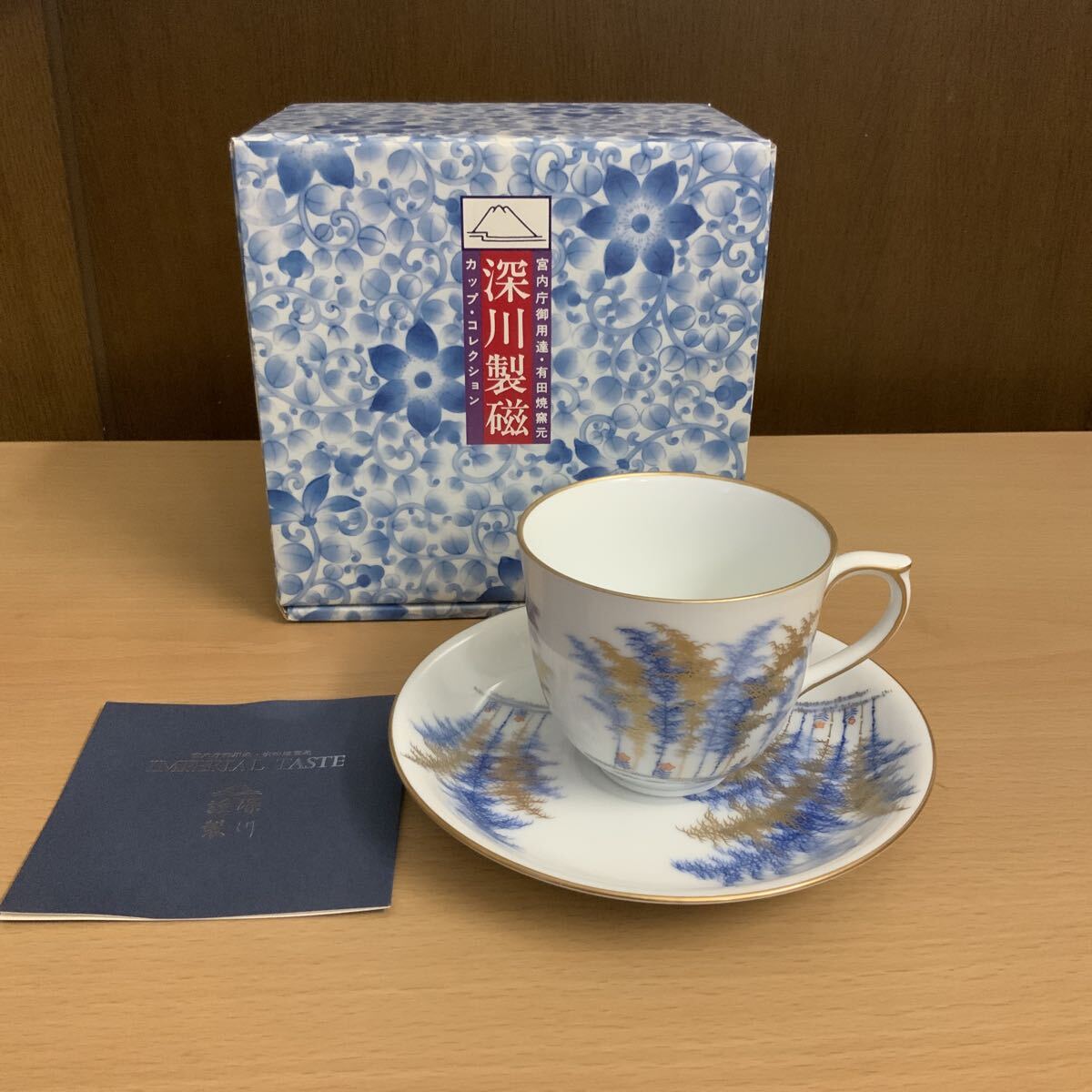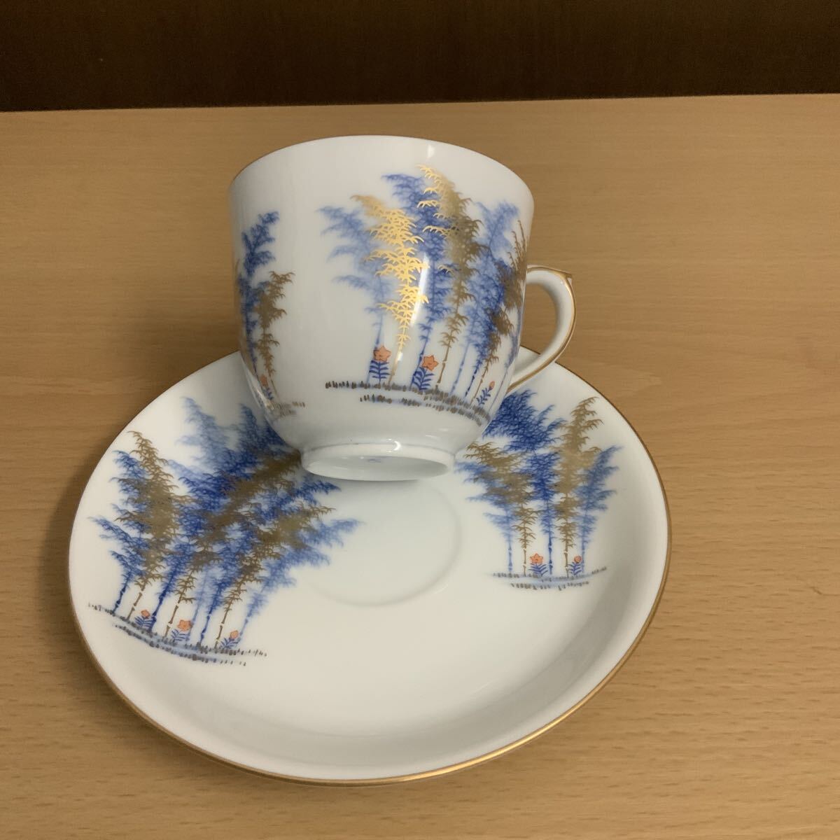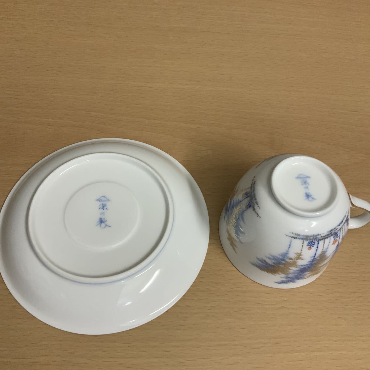 大きさはカップ上部外径8cm、底部3.5cm、高さ6.7cm、ソーサー外径14cm。