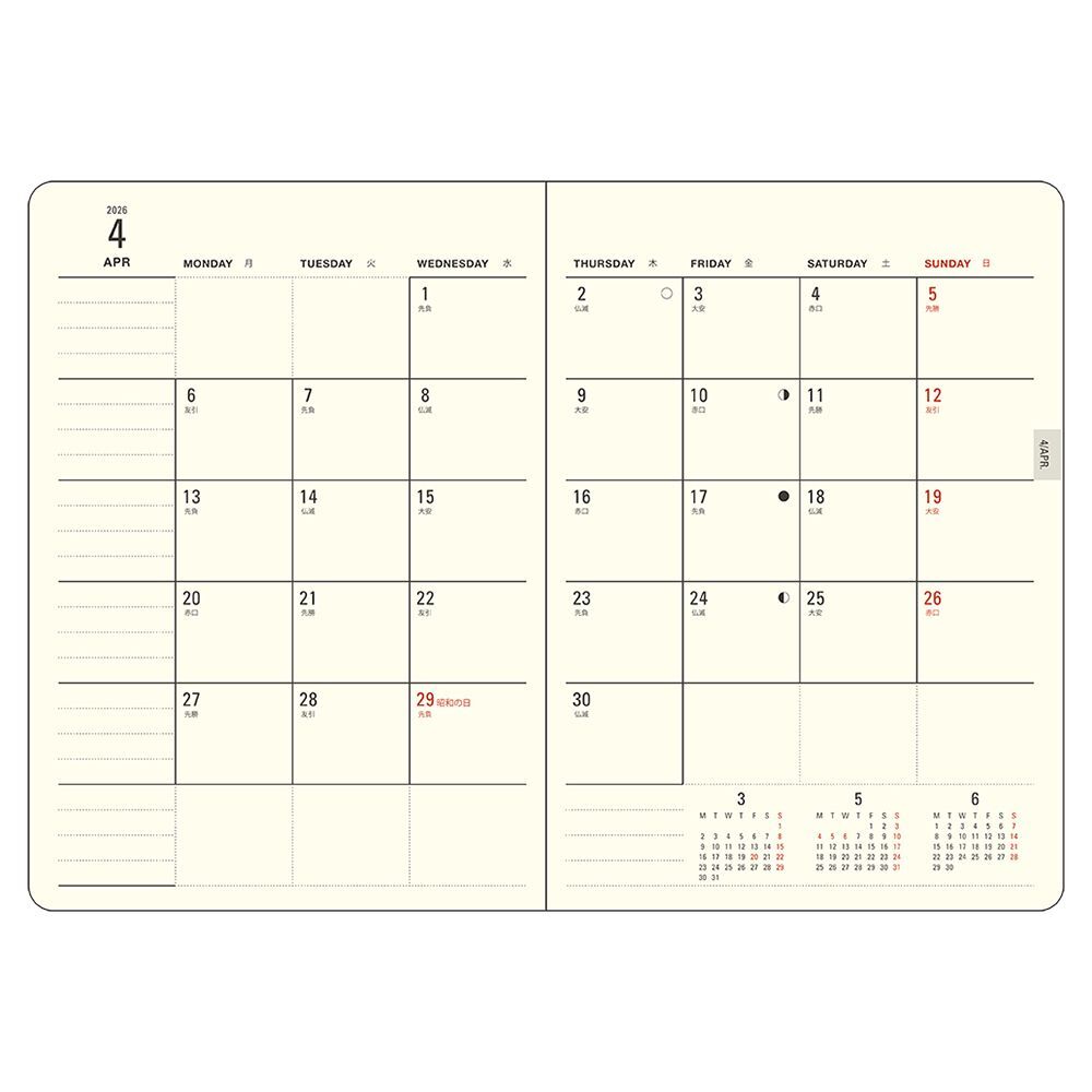 ミル / MILL E7751 は、1ヶ月の予定を曜日ごとに把握しやすい、カレンダーと同じ感覚で使える月間予定表です。