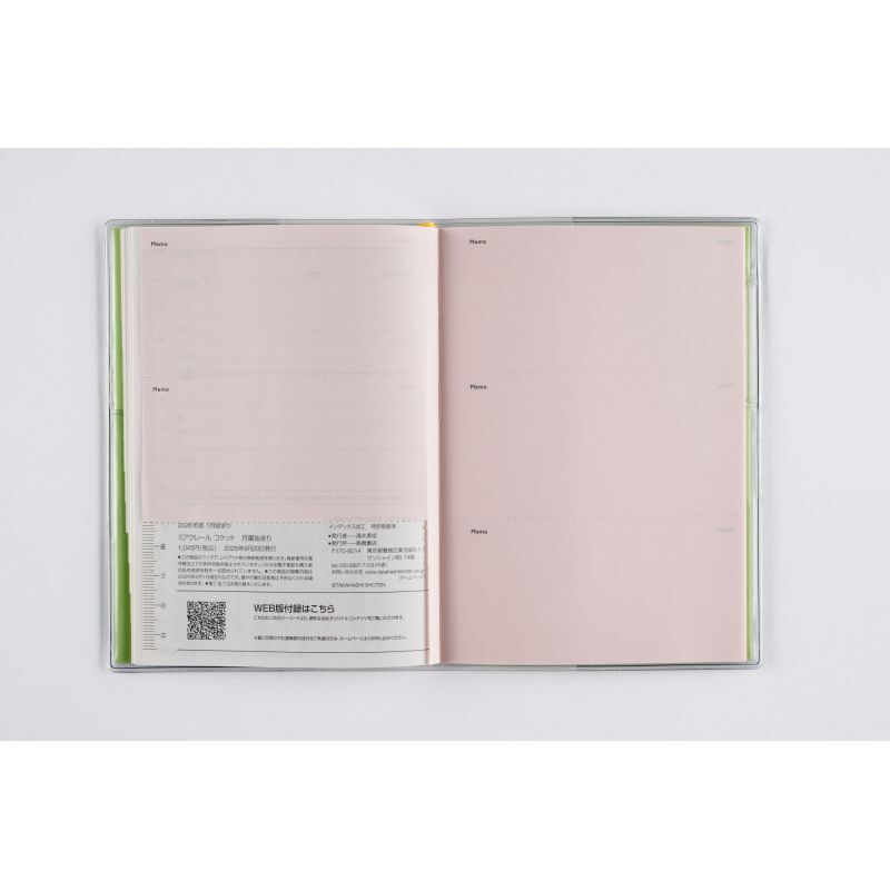 【週間予定表】1~12月の各月の後ろには、横ケイメモが2ページ付いています。月間ページだけでは書き足りない予定を書き加えたり、チケットの半券などの思い出の品を貼ったり、自由にカスタマイズできます。