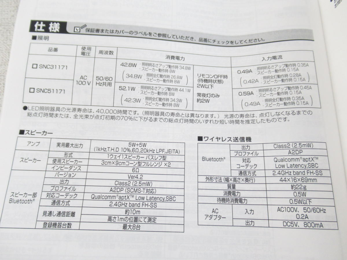 ■★■未使用保管品■Panasonic/パナソニック■スピーカー付LED照明■LED(昼光色~電球色)■シーリングライト■リモコン調光・リモコン調色・カチットF■~8畳■動作未確認■取扱説明書付き■SNC31171■現状■