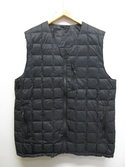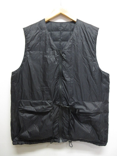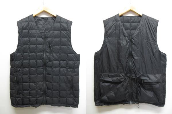 タイオン TAION 美品 リバーシブル ダウン ベスト XL 黒 ブラック 軽量 ナイロン 収納ポーチ付き メンズ