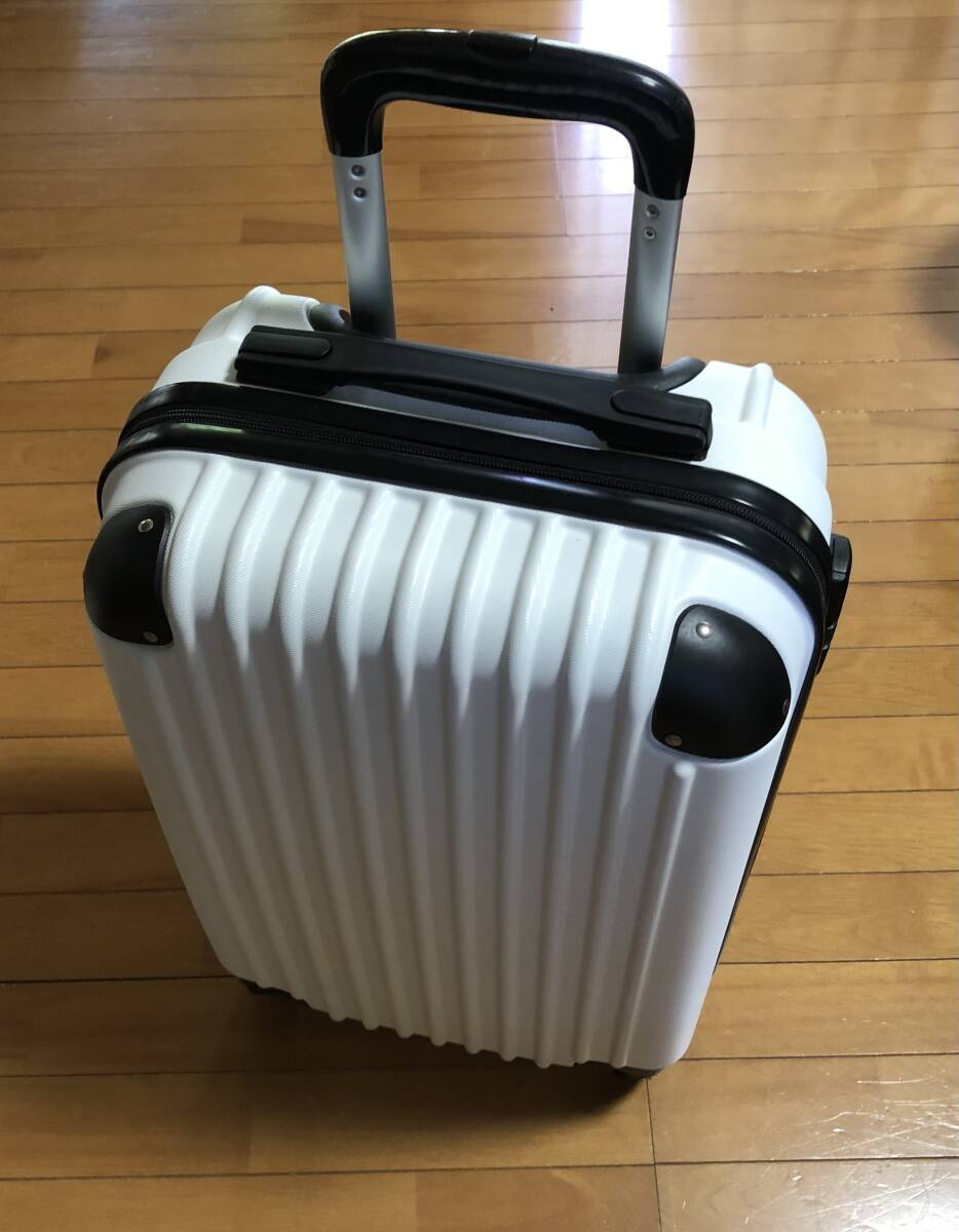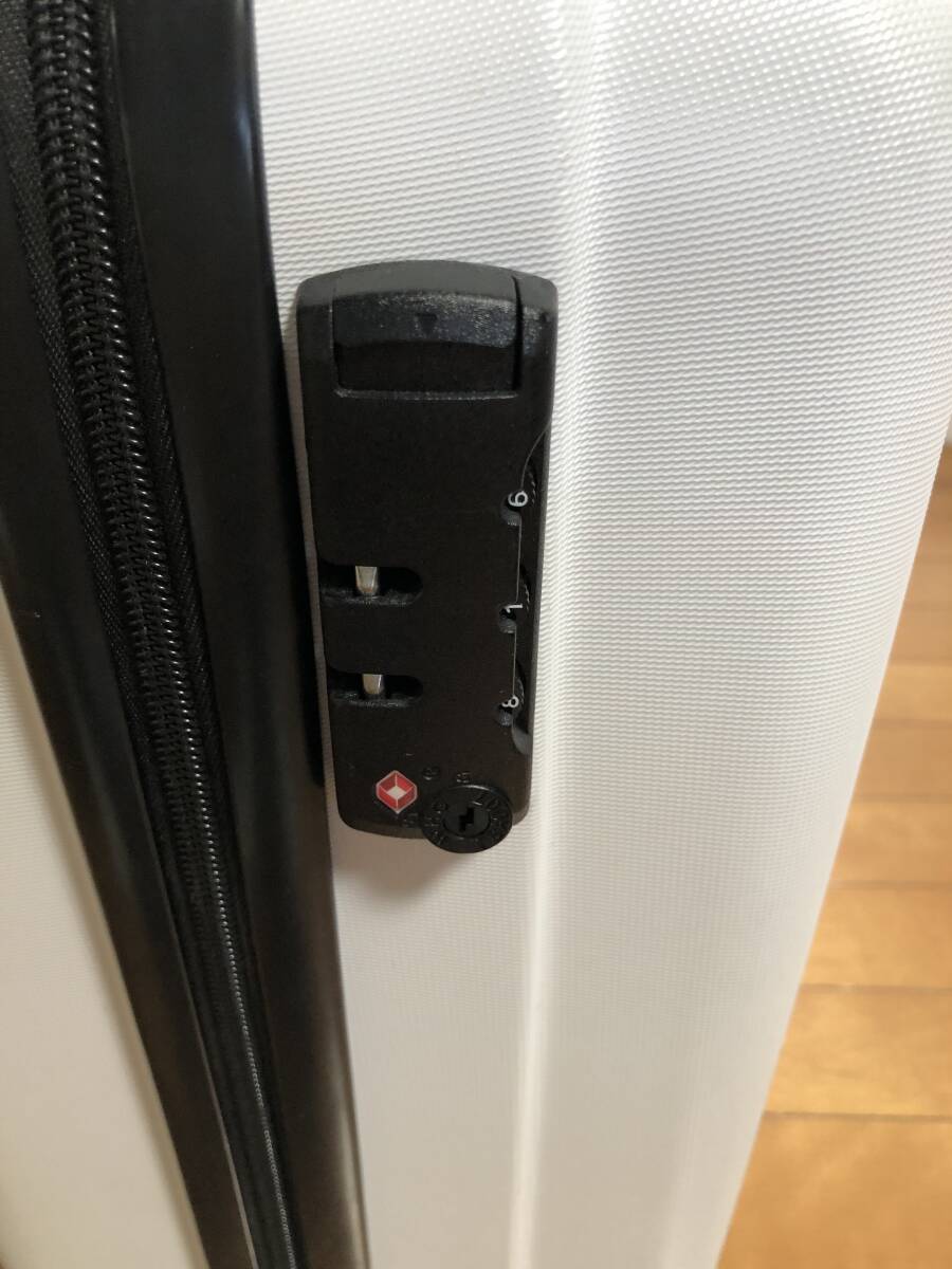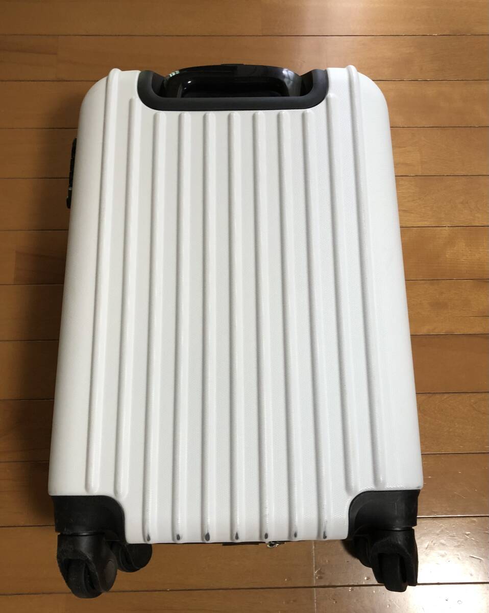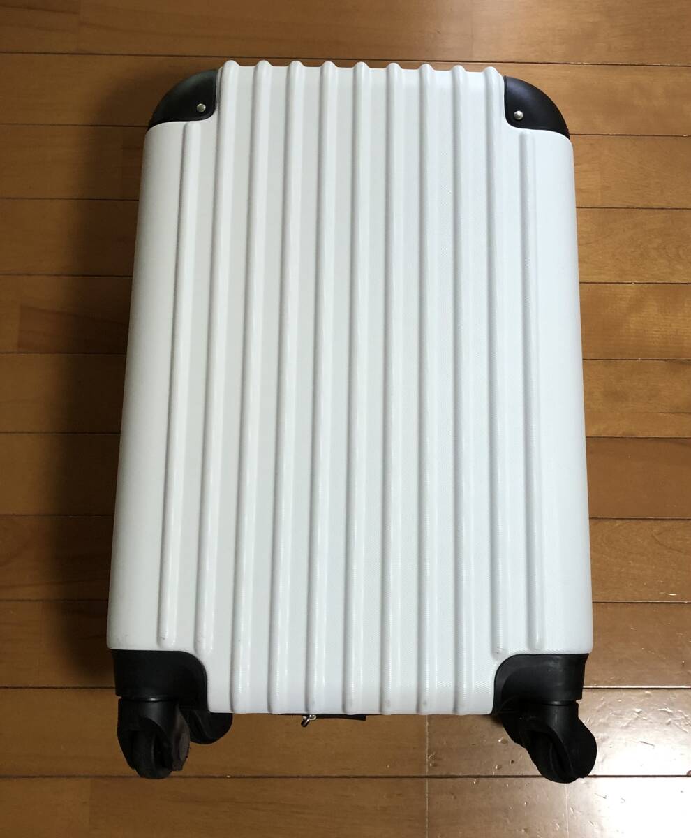 新調した為、不要になり出品致しました。メーカー等は不明です。ホワイトのスーツケース、キャリーケースです。サイズですが、立たせた状態で地面から測って、縦約59センチ、横約39センチ、厚み約22センチ位になります。素人採寸ですので、誤差はお許し下さい。数回旅行、出張に使用しましたので、通常使用によるキズ、スレはございます。カギは3桁の番号を合わせてのロックになります。ご落札後に現在設定しています番号3桁をお伝え致します。また、番号の設定方法など忘れたてしまった為、違う番号への変更はわかりません。ご了承下さい。発送はゆうパック静岡発120サイズにてお送り致します。是非ご検討下さいませ。