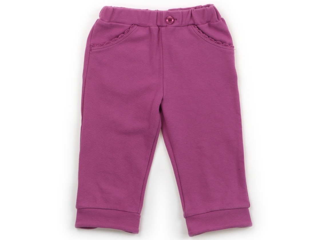 コットンやポリエステル配合生地、ウエストは総ゴムです。膝下丈。お尻に毛玉、裾にやや白っぽく擦れ感が見受けられます。