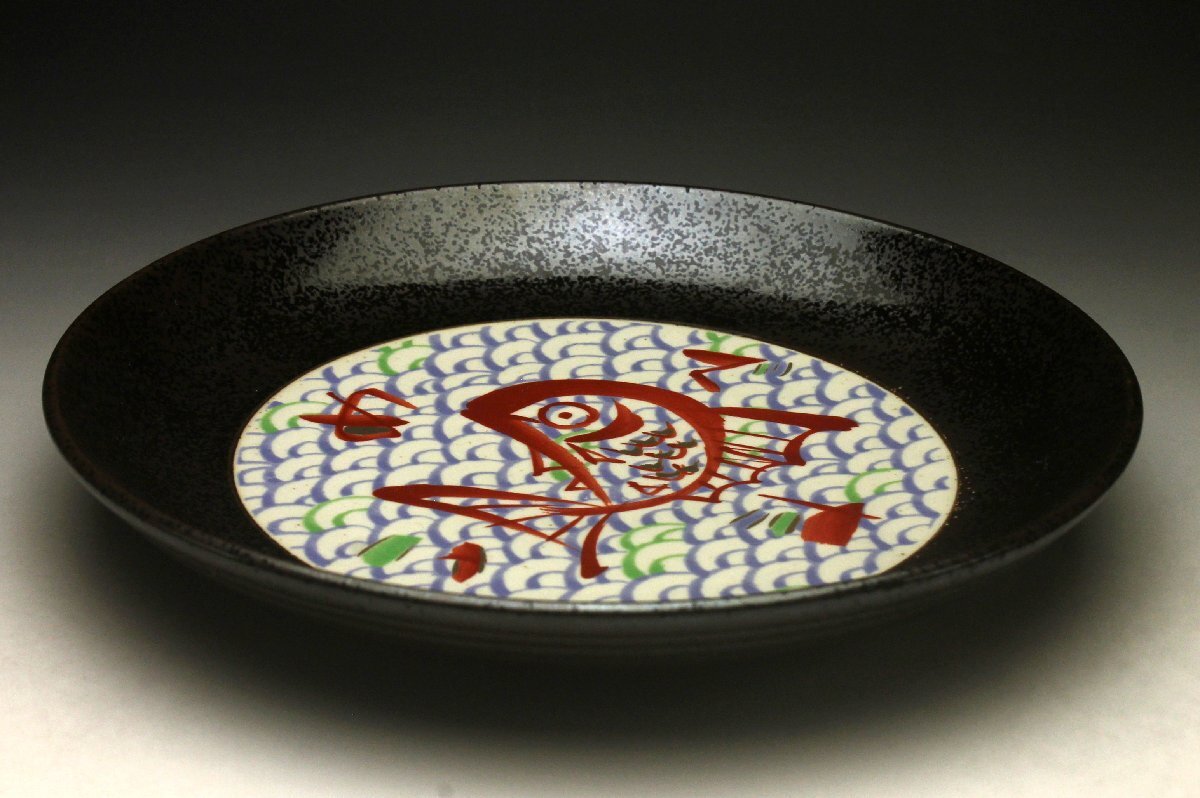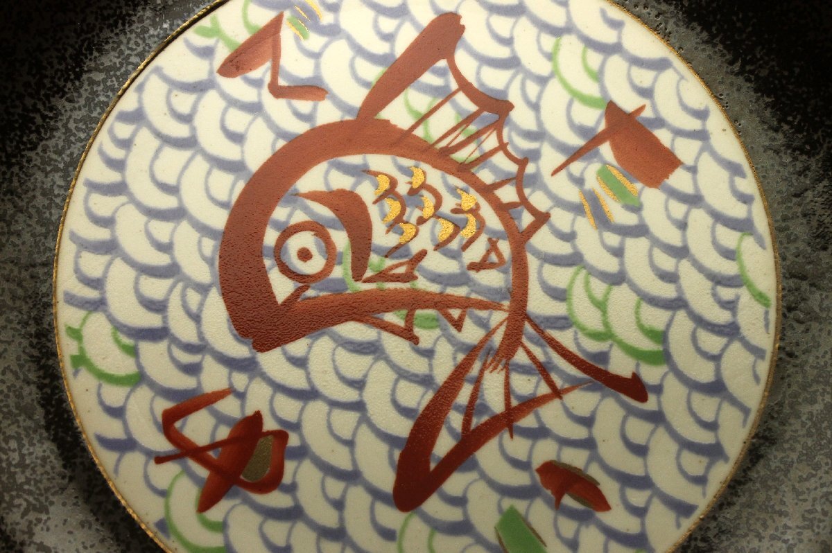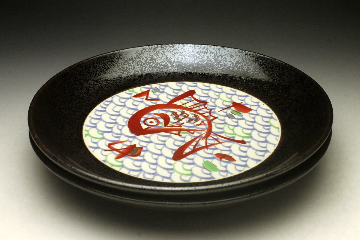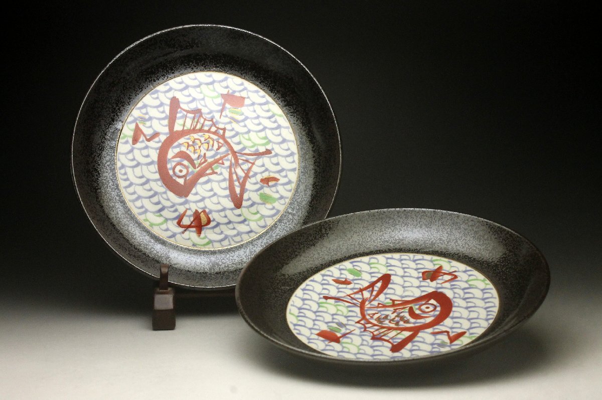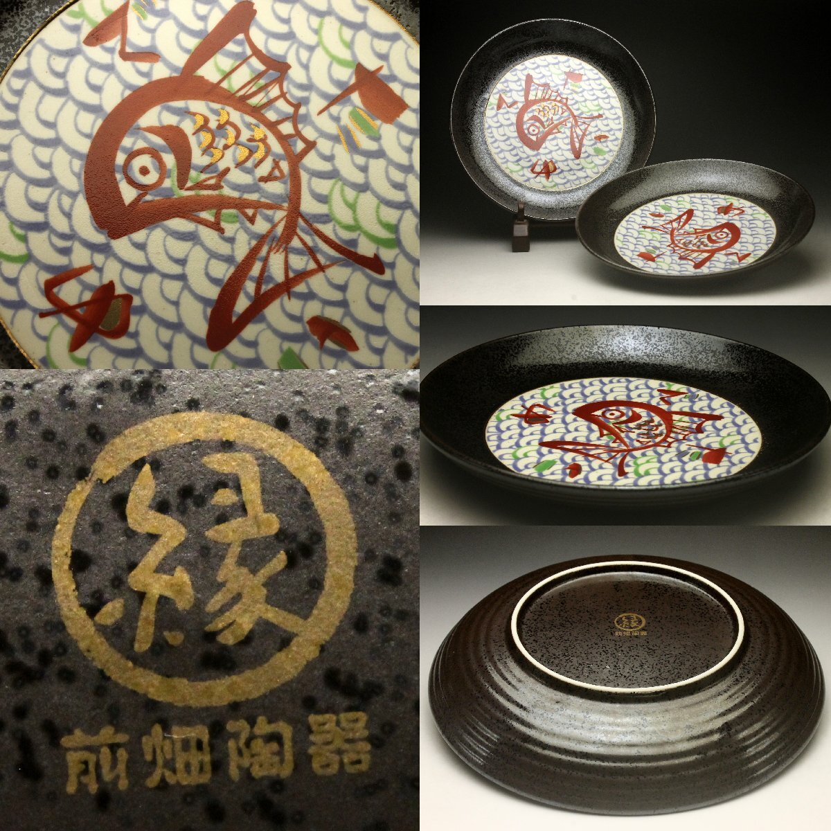 【余韻】前畑陶器 赤絵 鯛文 皿 2枚★無傷美品 <同梱可>