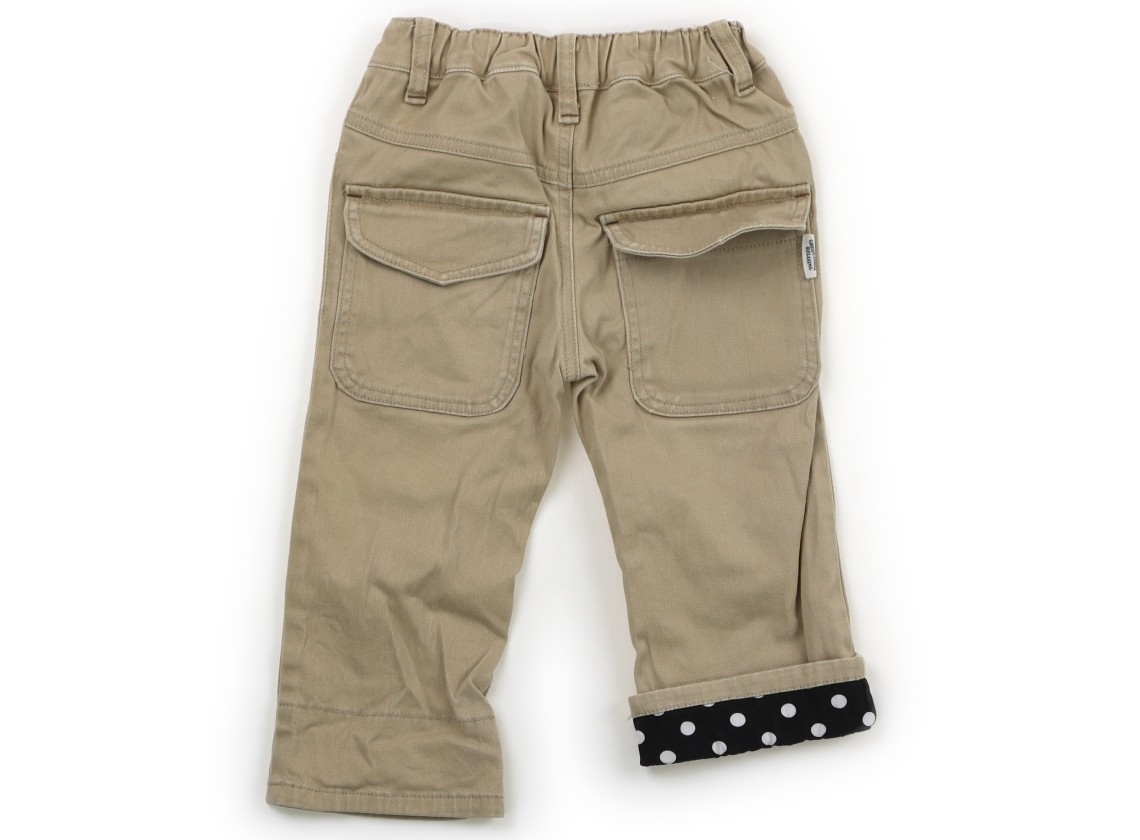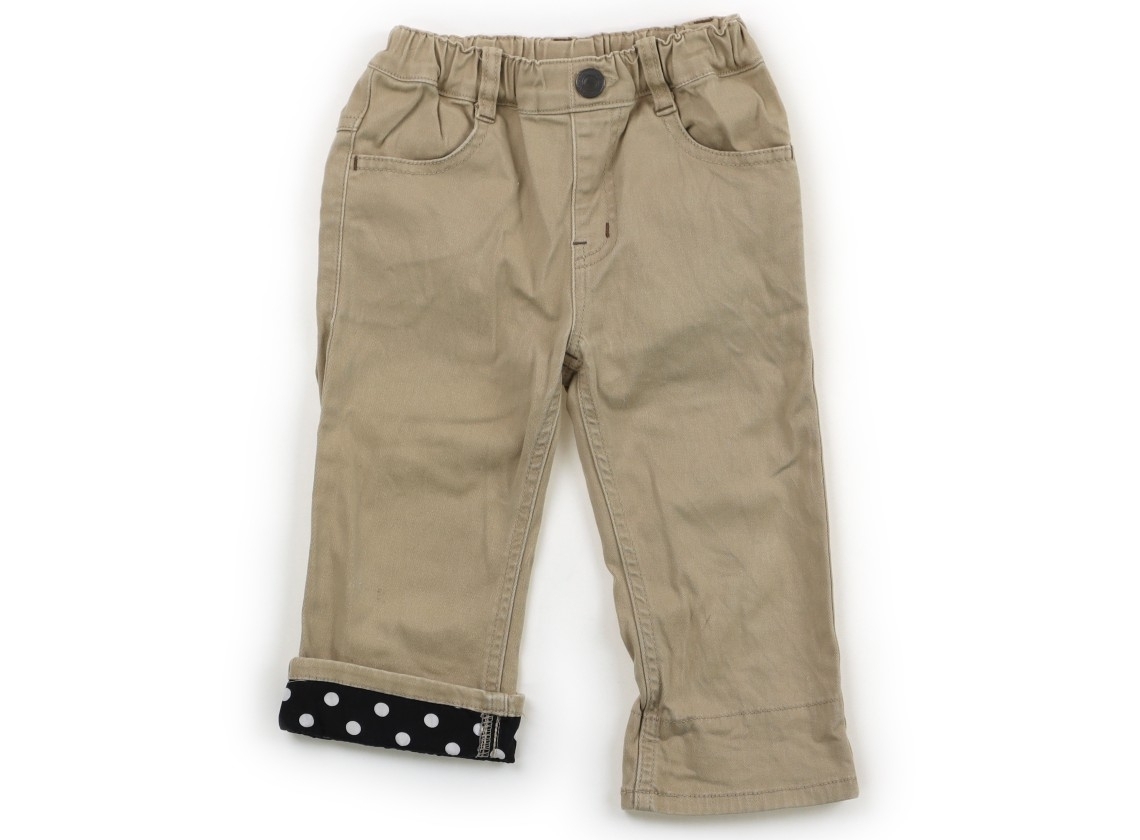 green label relaxingです。ストレッチ性のあるツイル布帛生地です。ウエストは総ゴムです。裾口裏は水玉生地です。両ひざに1cmほどの汚れがありますが、まだ活躍してくれそうです。