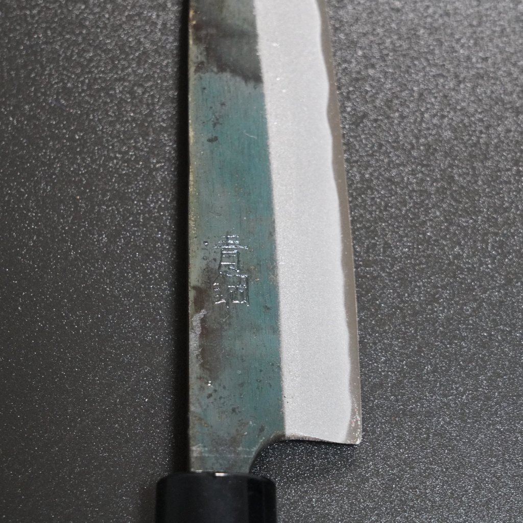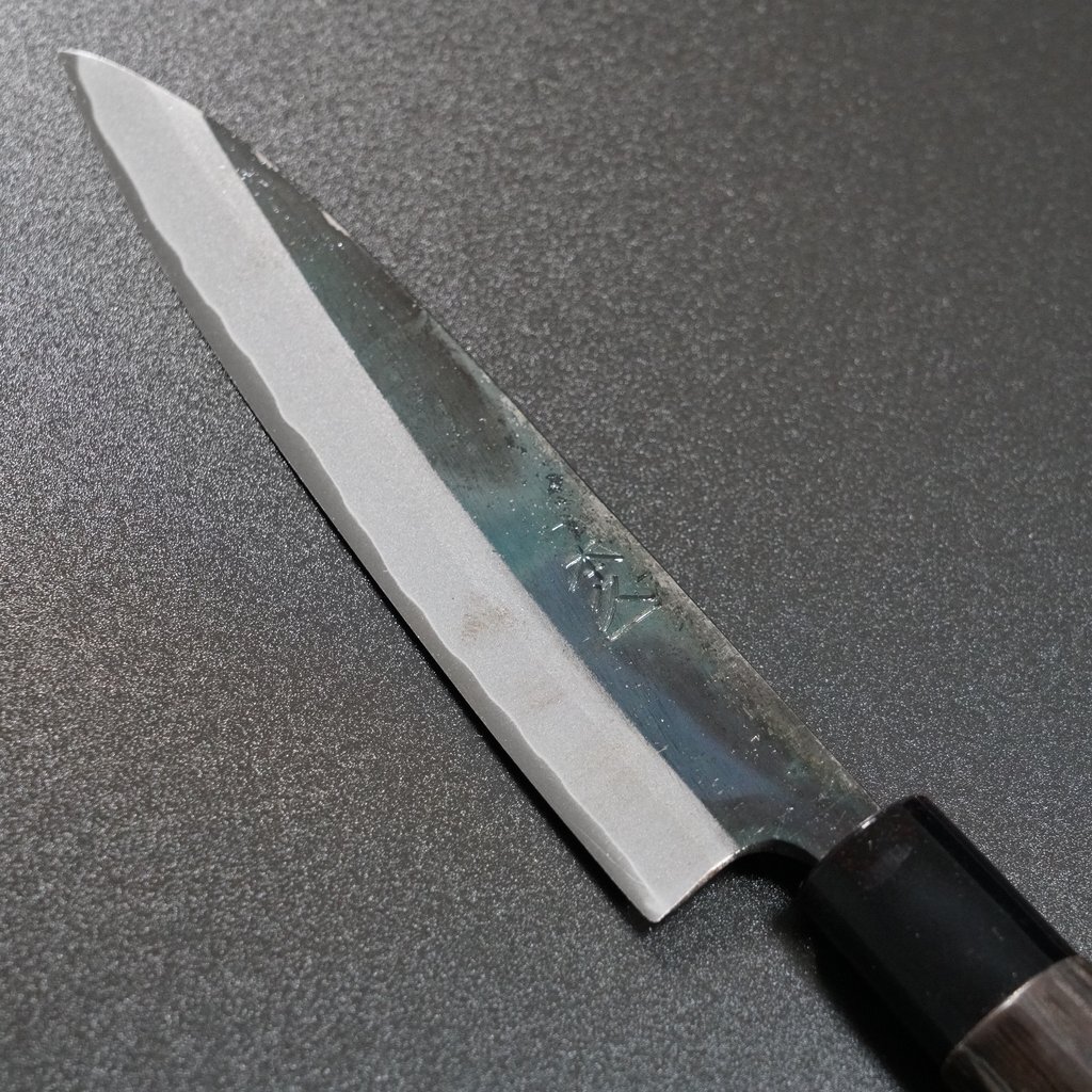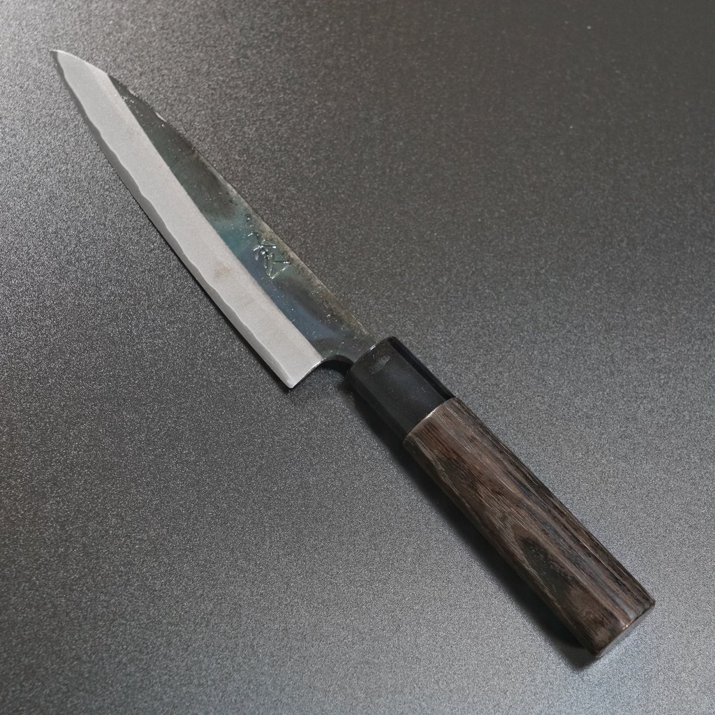 包丁 ペティナイフ 150mm 本久一 青紙鋼 黒打 5寸 栗木柄 本久一刃物 日本製