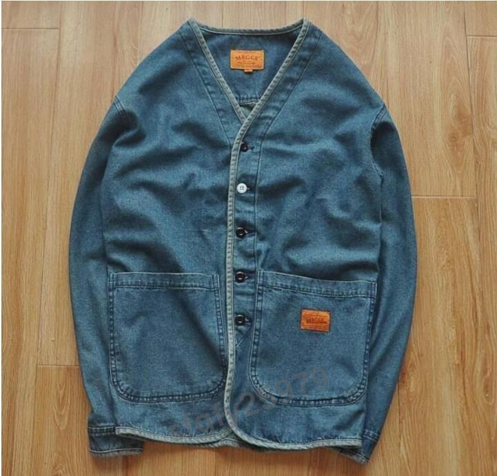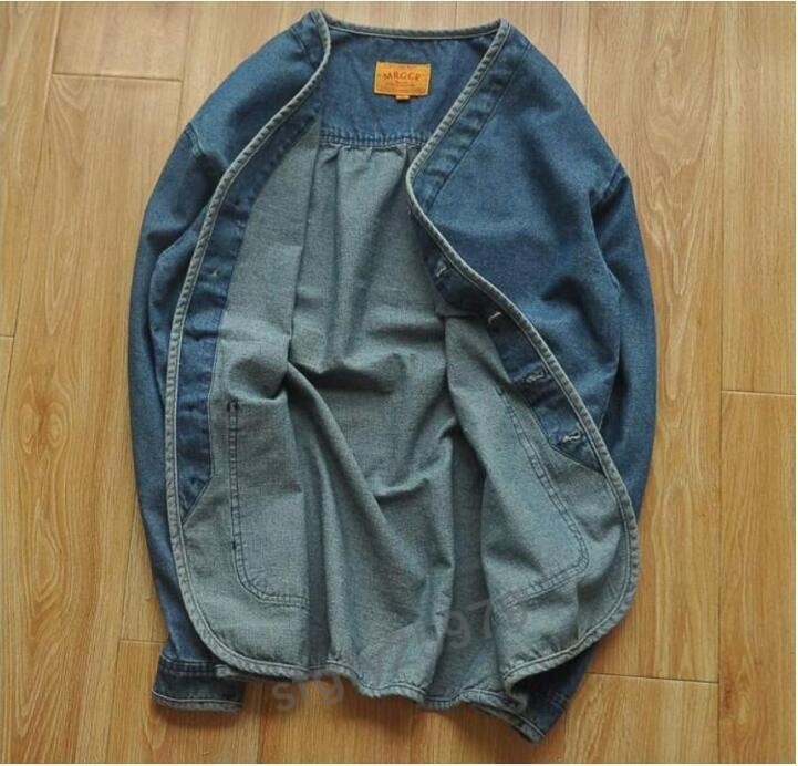 I248☆新品春 ヴィンテージ復刻アメカジ デニムカバーオール 綿 ワークジャケット インディゴ 作務衣 男前 Lサイズ