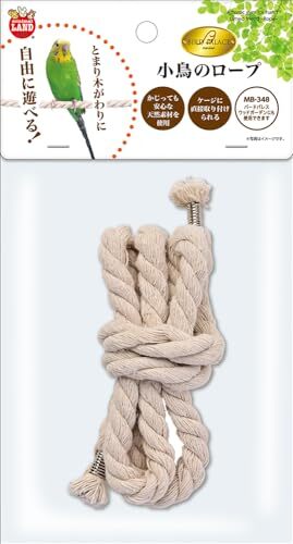 「ミニマルランド バードパレス 小鳥のロープ 1本」▼4906456580171▼(商品説明)ー/-/4906456580171・パッケージ個数:1・とまり木がわりに自由に遊べる・商品使用時サイズ:約Φ10×長さ1270mm・原産国:中国商品紹介 ・ケージ内などに自由にして、とまり木代わりに使用できるロープです。 ・普段のとまり木とは違うとまり心地で、小鳥の生活に刺激を与えることができます。 使用方法 ・ロープを固定したい場所で結び目を作るか、直接ケージのワイヤーに結びつけ、お好きな形にロープを張ってお楽しみください。 あまり緩くしてしまうと、小鳥によっては足場が不安定になり危険ですので、様子を見てロープの張り方を調整してください。