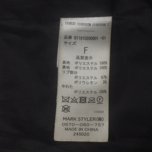 | ムルーア サイズ F 中綿 ジップアップ ジャケット フード付き レディース ブラック系 アウター アパレル MURUA |