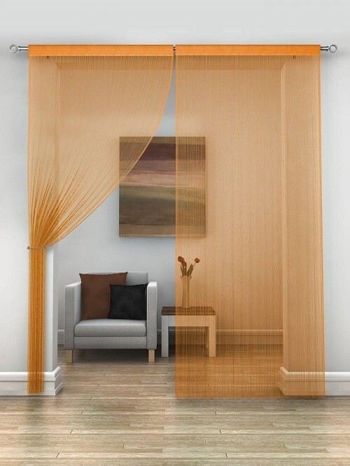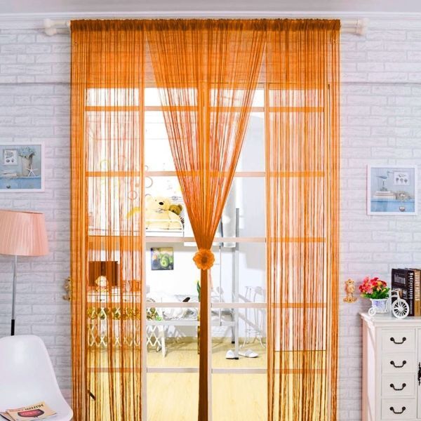送料無料 キラキラ ラメ入り ひものれん 間仕切り のれん 目隠し カーテン 全12色 オレンジ