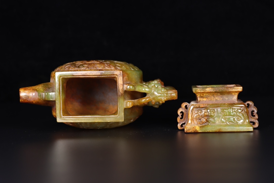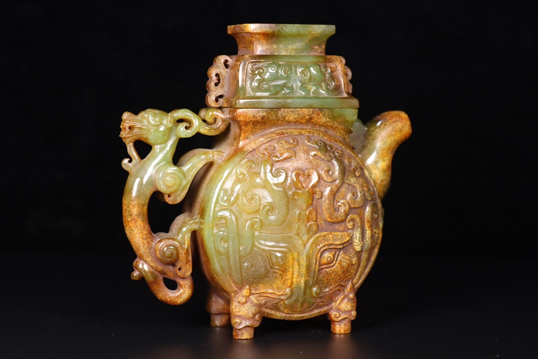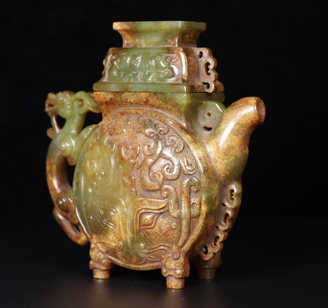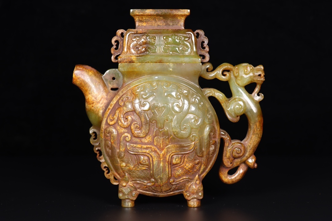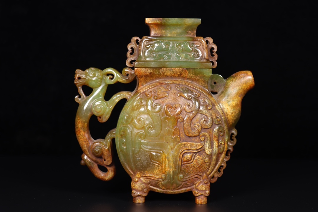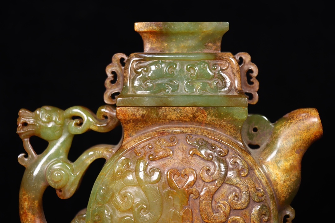 *珍品旧蔵* 清 玉彫 和田玉壺 玉質細膩 包漿厚重 沁色入骨 彫工精細 極細工 中国古玩 骨董品 古美味 H48