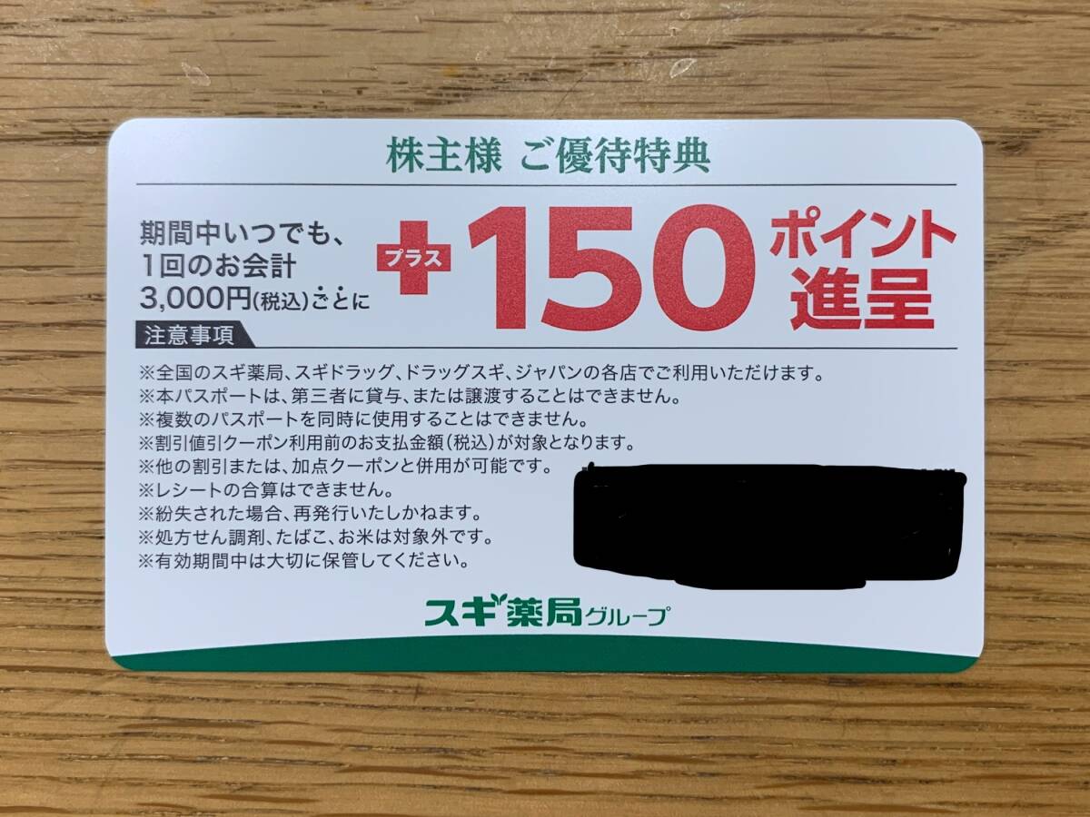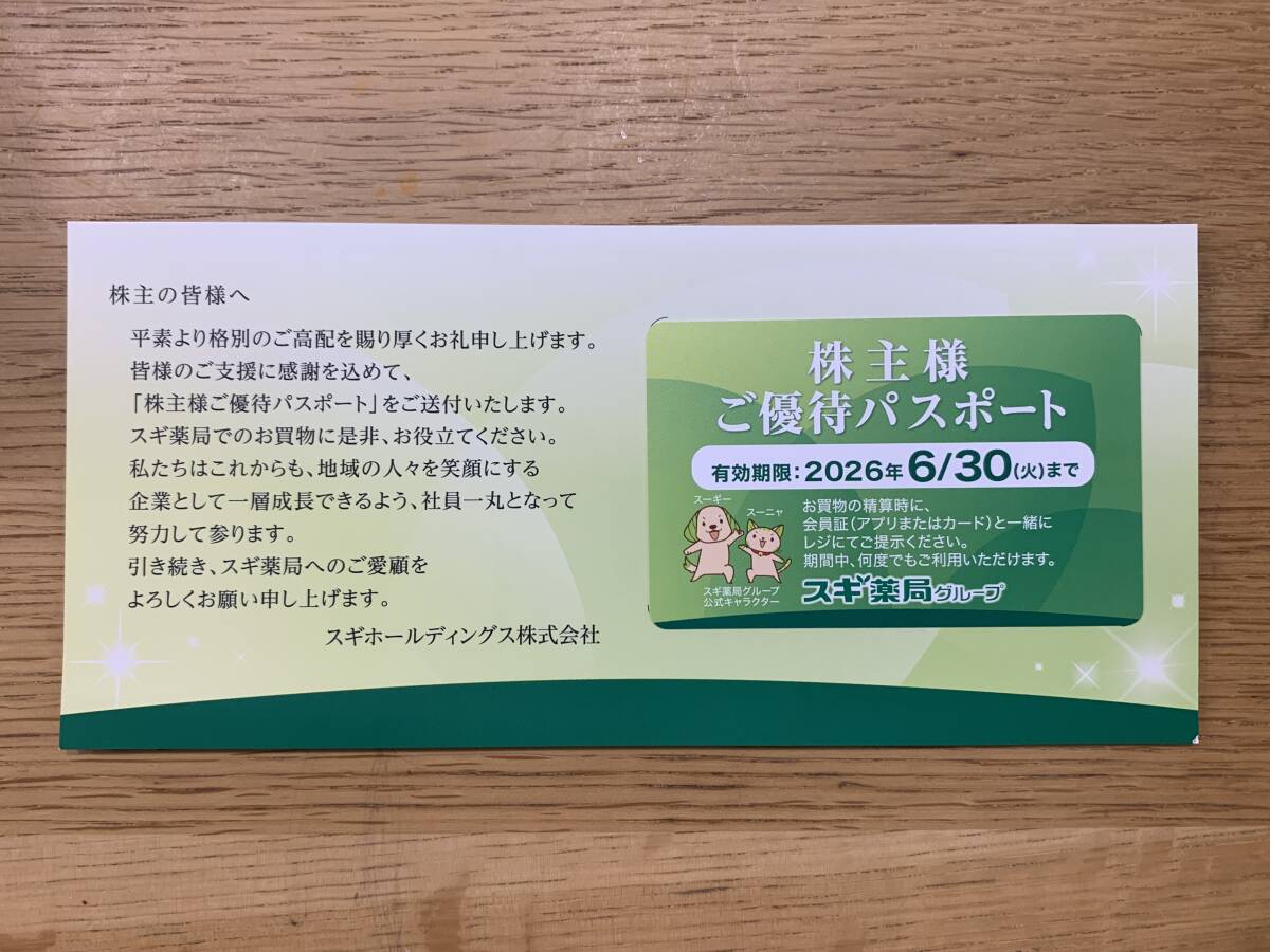 スギ薬局 株主様ご優待パスポート 有効期限2026年6月末 3000円ごとに150ポイント進呈 送料無料