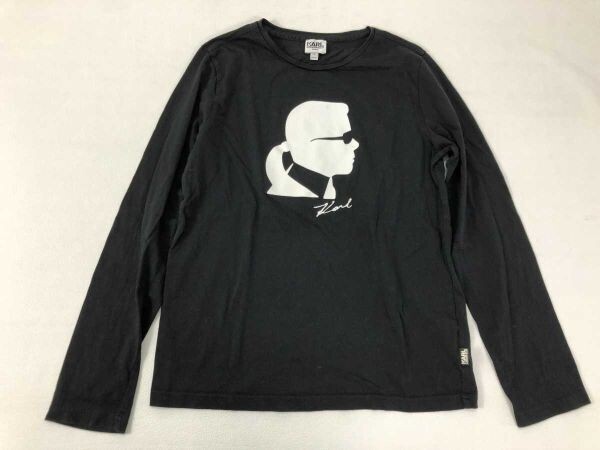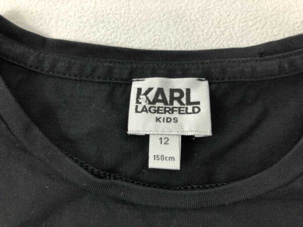 KARL LAGERFELD カール・ラガーフェルド レトロ 古着 長袖Tシャツ ロンT カットソー ラバープリント キッズ 綿100% インド製 150 黒 です。