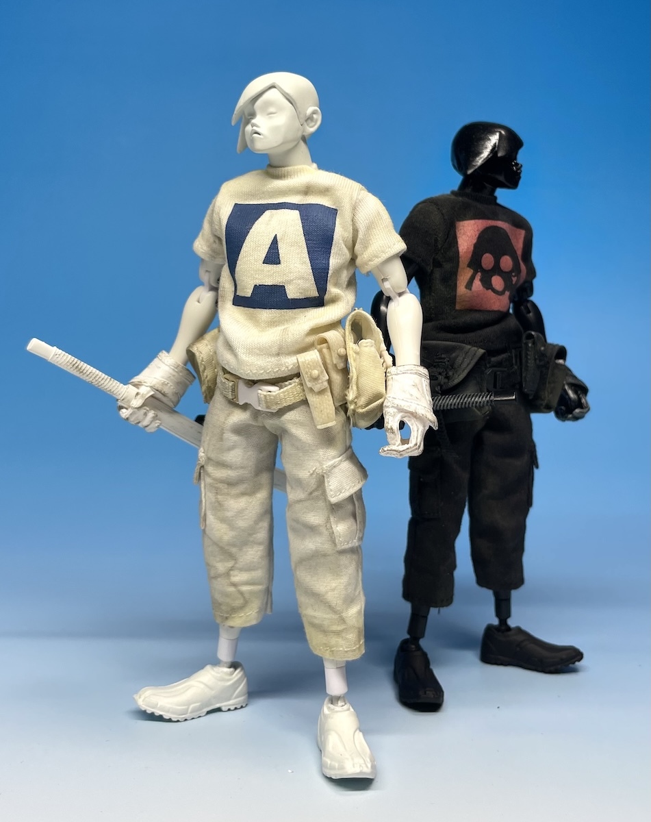 白い方は1/12 The Two OYA TK 2pセット LightのSLICER BAKAヘッドと靴をノーマルTKと入れ替え、リペイントして1/6 Blanco風にリペイントカスタムしたものです。