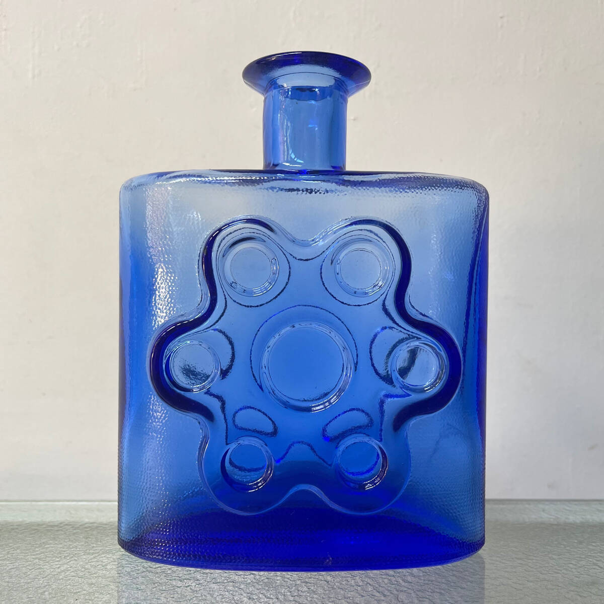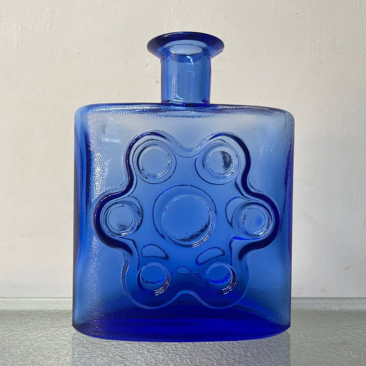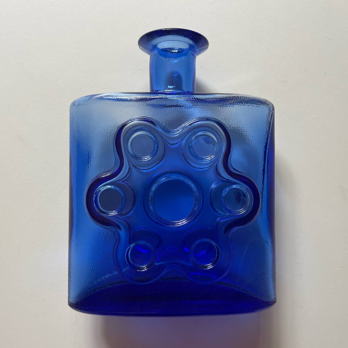 今は亡きフィンランド.Riihimaen Lasi社.Erkkitapio Siiroine(エルッキタピオ シーライネン)デザインによるフラワーベース「PAUKKURAUTA」。製作期間は1970~1972年。 状態..程度良好.美品の類。寸法..13x6xH17cm位。