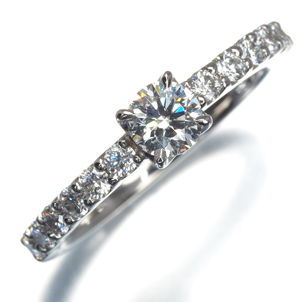 『アイディアルメイク』という美しいプロポーションを生み出す上質ダイヤモンドの輝きを留めたラザールのリング。カラーレスの美しい1石がメレダイヤの繊細な煌めきと共に指もとを上品に照らしてくれることでしょうね。 |