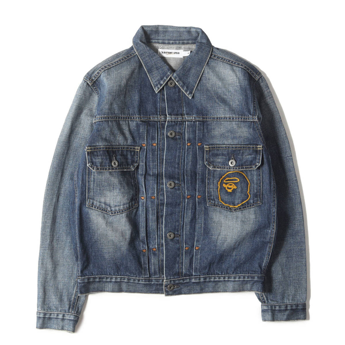 【ブランド名】A BATHING APE(ア ベイシング エイプ) 【リリース時期】2007年頃 【素材】コットン100% 【商品説明】 ヴィンテージ加工を施した2ndタイプのデニムジャケットです。チェーン刺繍の猿顔とチャンピオン(ロープ)ロゴがデザインされております。 【カラー】インディゴ 【サイズ】S 着丈約62cm(背中襟下から)×身幅約53cm(脇下から)×肩幅約45cm×袖丈約61cm(肩上から) 【状態】B.中古(良品) 【付属品】なし ![]() ※色がある場合、モニターの発色の具合によって実際のものと色が異なる場合があります。 お問い合わせに関しましてはメールのみでのご対応とさせていただいておりますのでご了承下さいませ。 |