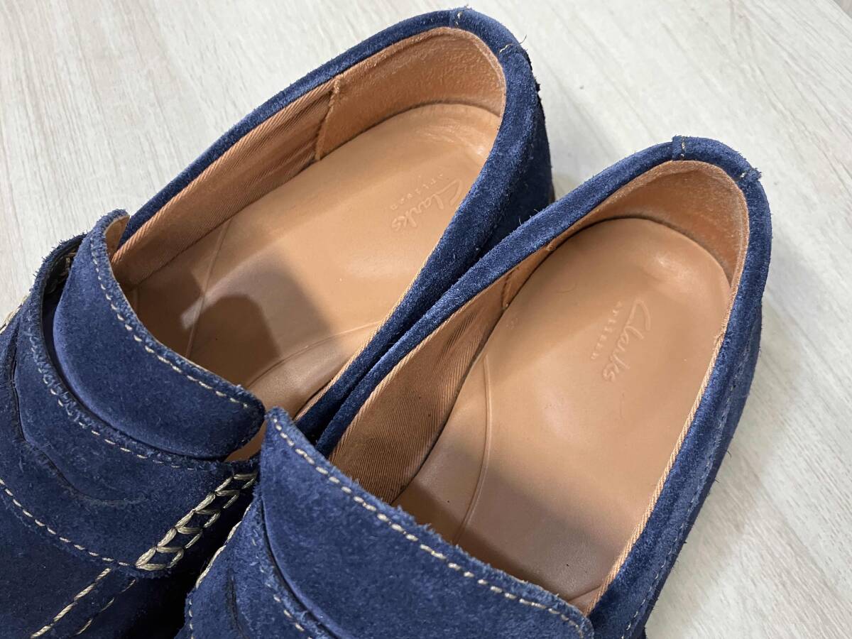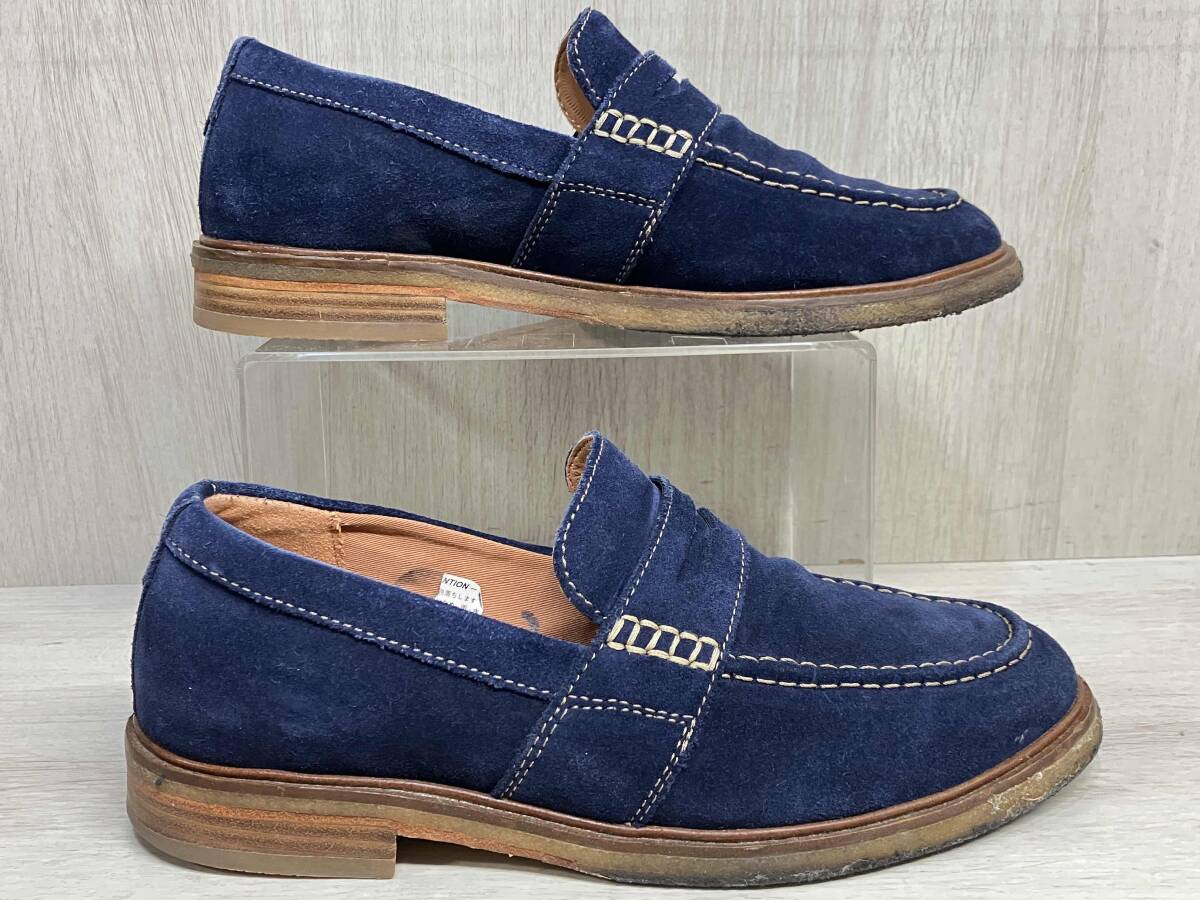 Clarks artisan 26cm 本革 レザー ローファー ドレスシューズ クラークス アルチザン スエード メンズ ネイビー クレープソール