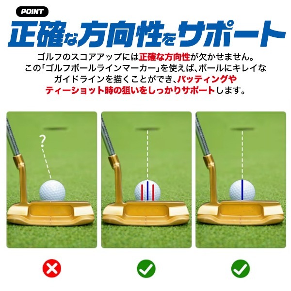 パッティングやティーショット時の狙いをしっかりサポートし、ゴルフのスコアアップに!
