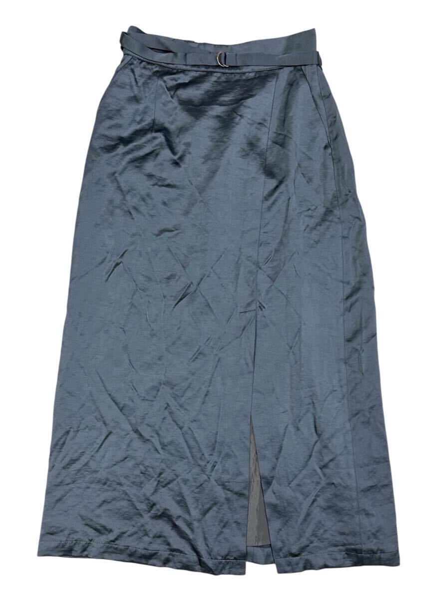 腰ベルト付 フロントスリット レーヨン サテン ロング スカートになり大変格好良くお洒落です