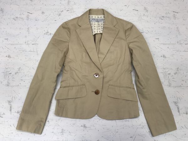 ETONNE エトネ TESSUTI DI SONDRIO生地 モード古着 チノクロス クロップド テーラードジャケット レディース 2つボタン 日本製 36 ベージュ です。