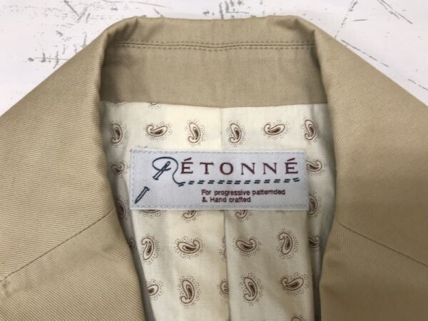 ETONNE エトネ TESSUTI DI SONDRIO生地 モード古着 チノクロス クロップド テーラードジャケット レディース 2つボタン 日本製 36 ベージュ