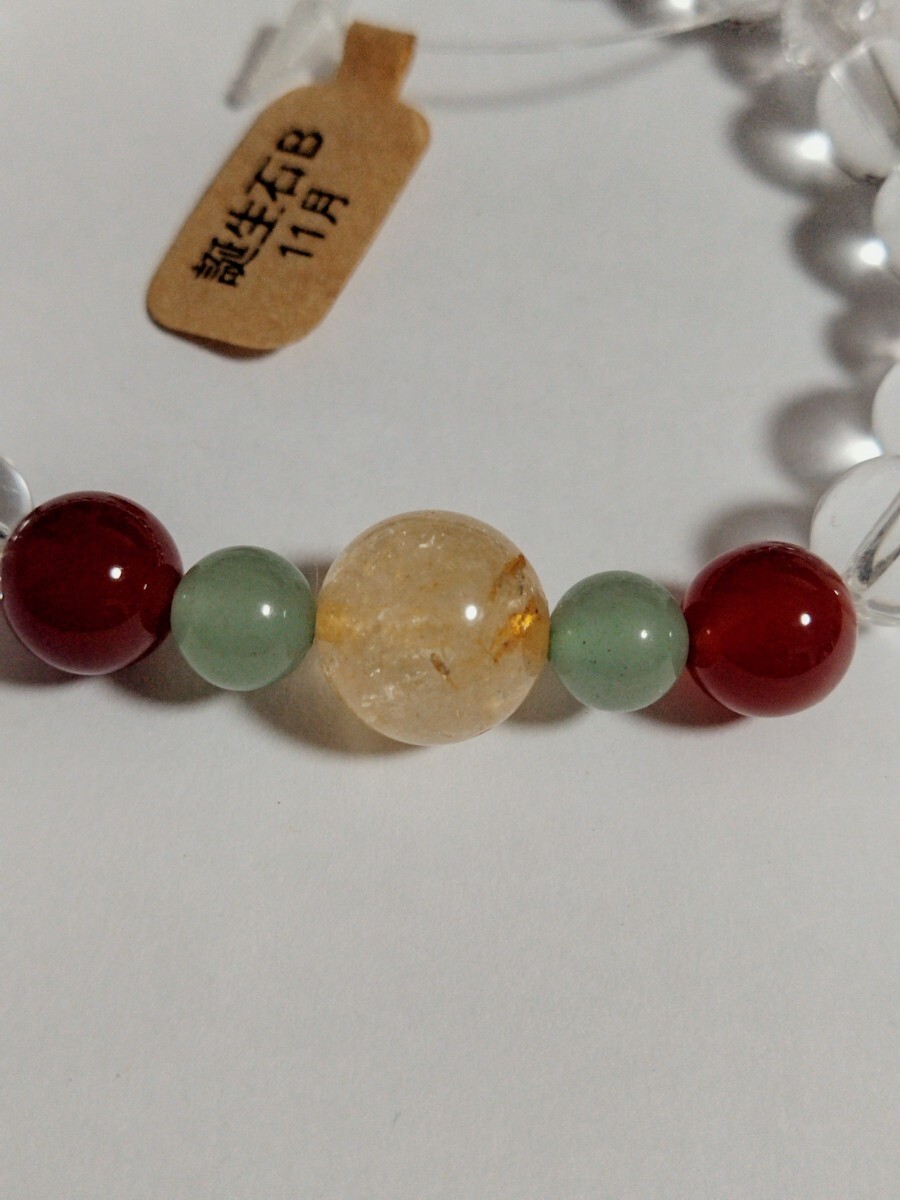 透明な天然石と11月の誕生石を使用したブレスレット。