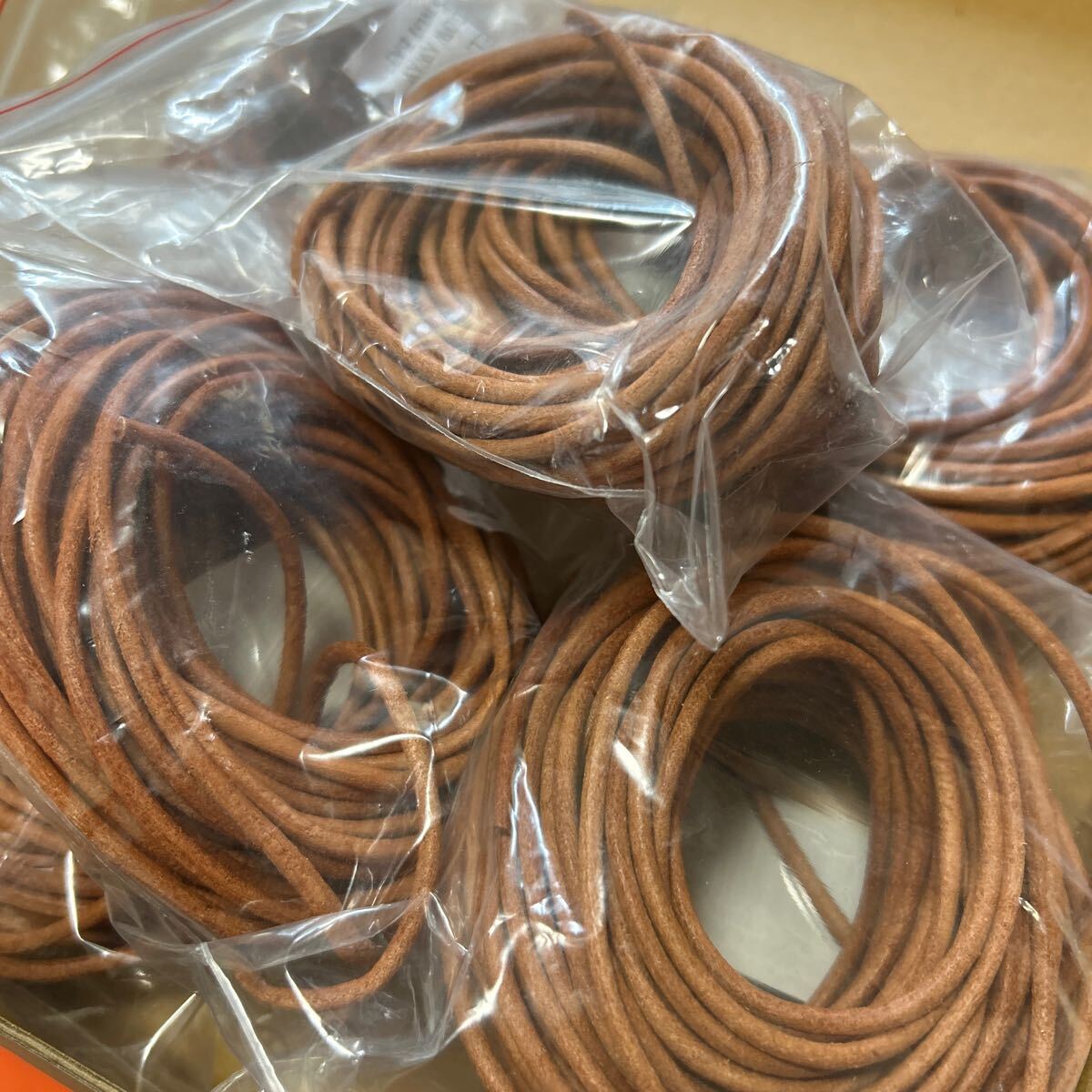 太さ3ミリの無着色本革丸紐10メートル巻きが5個のセットです。