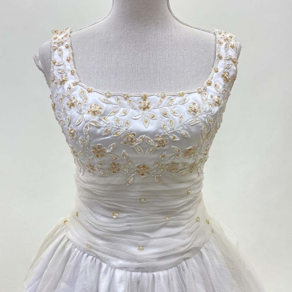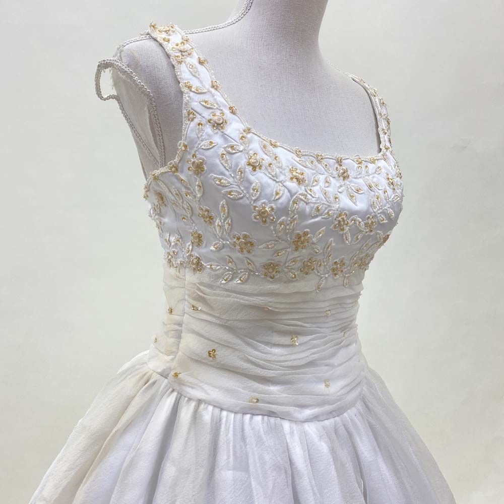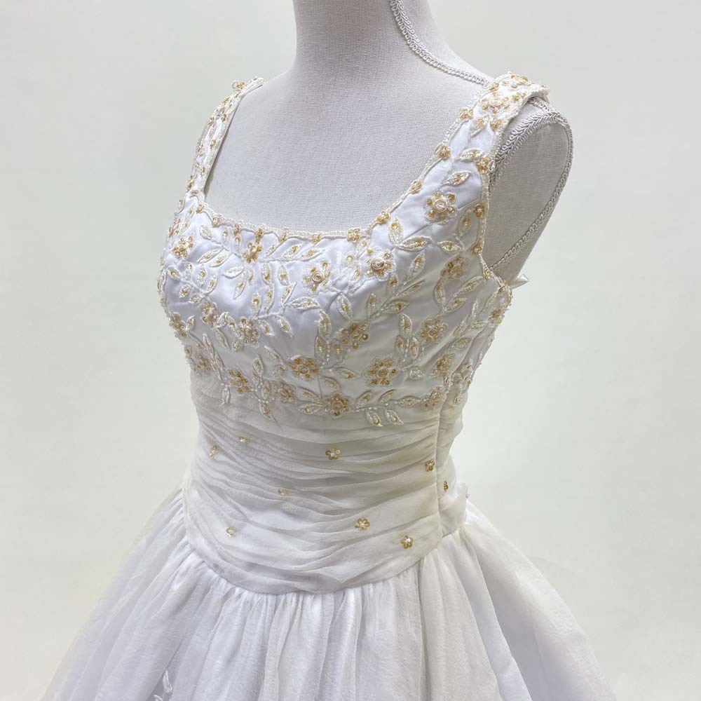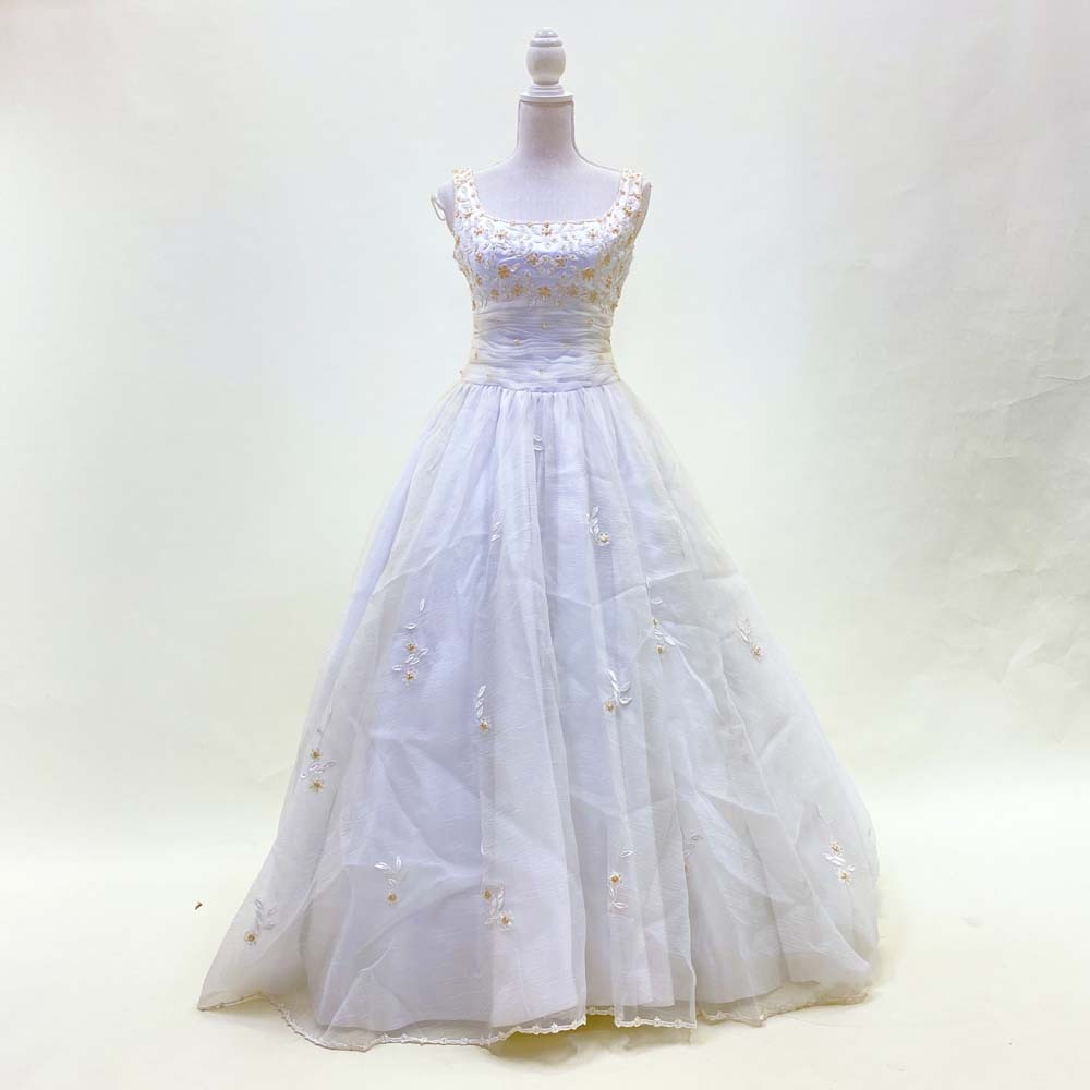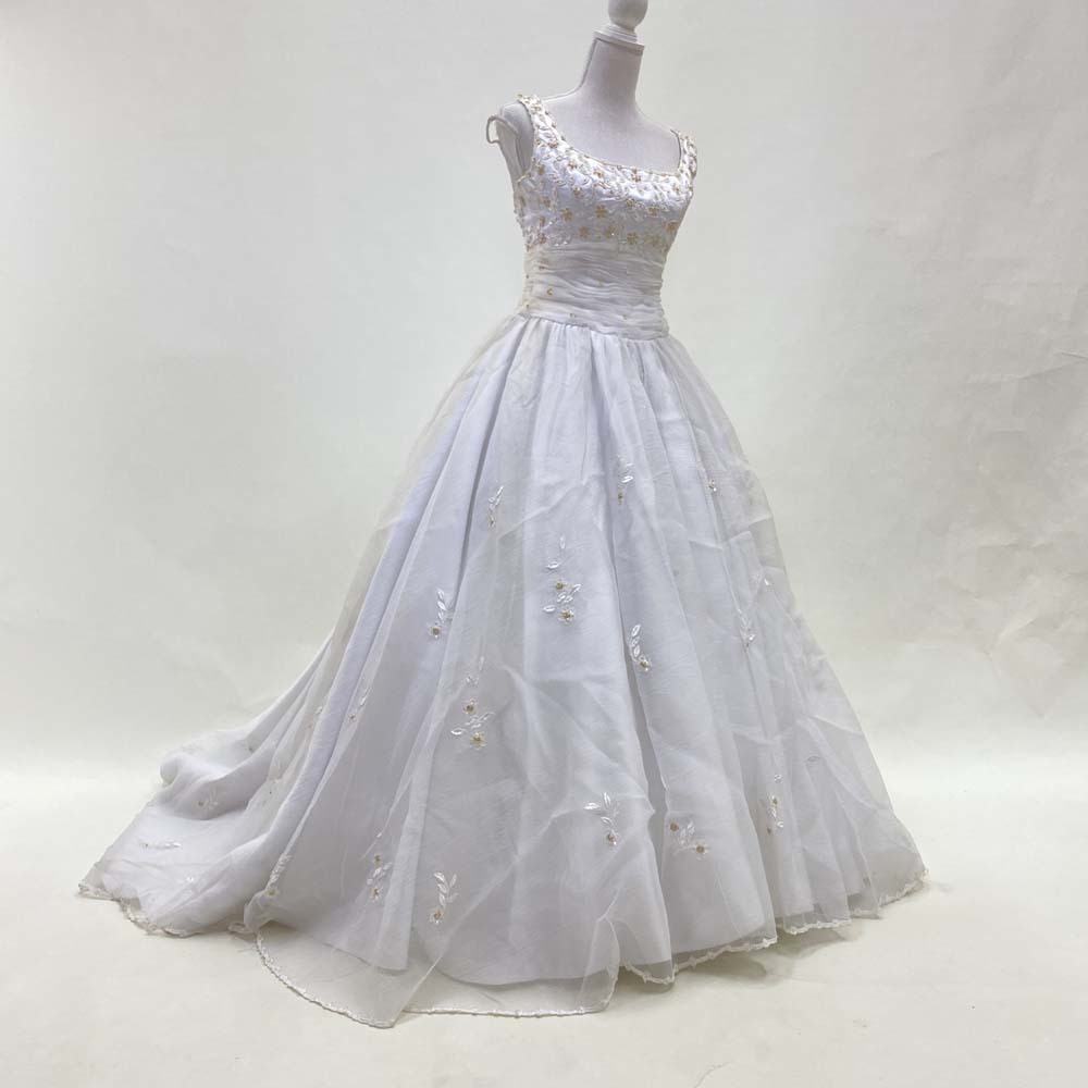 商品名 | ウェディングドレス 目安9号程度 中古 レースが豪華なドレス プリンセス オフホワイト W-253 |