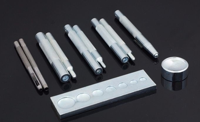 財布、キーケース、アクセサリー等、革製品にホックを取り付ける工具セットです。