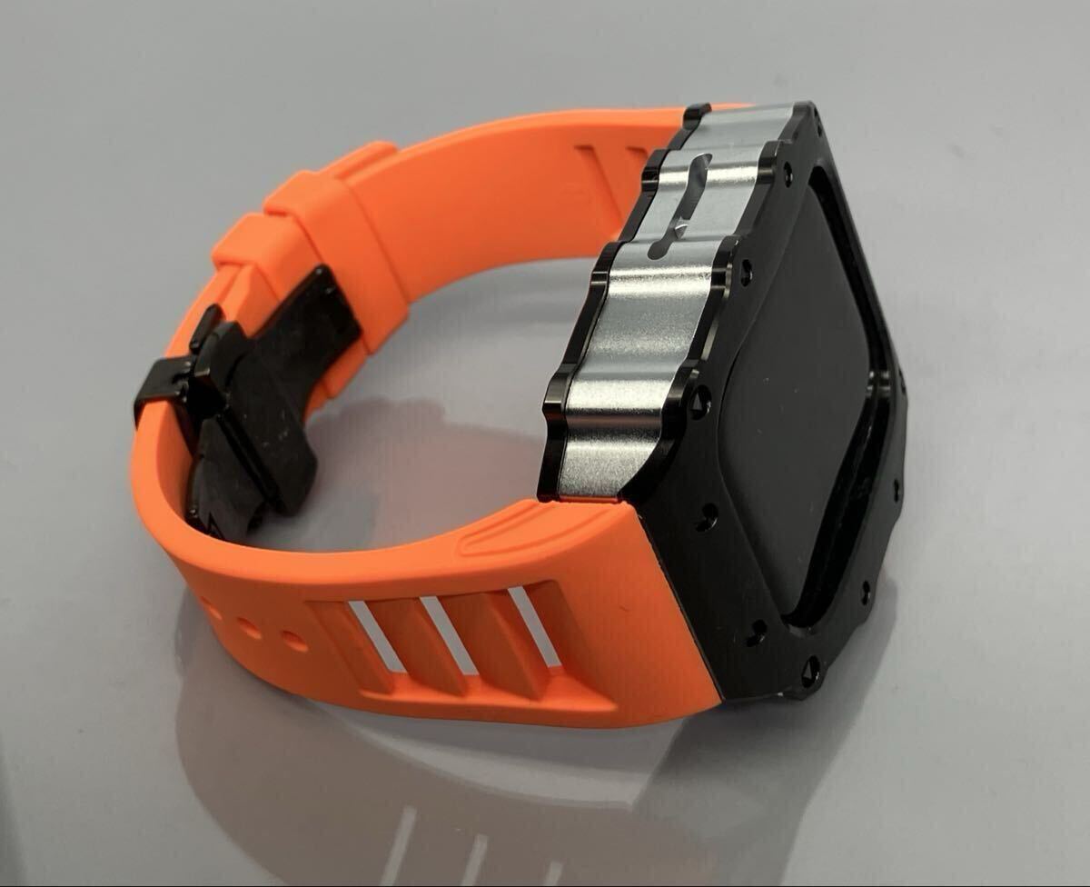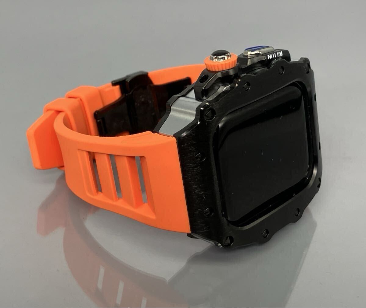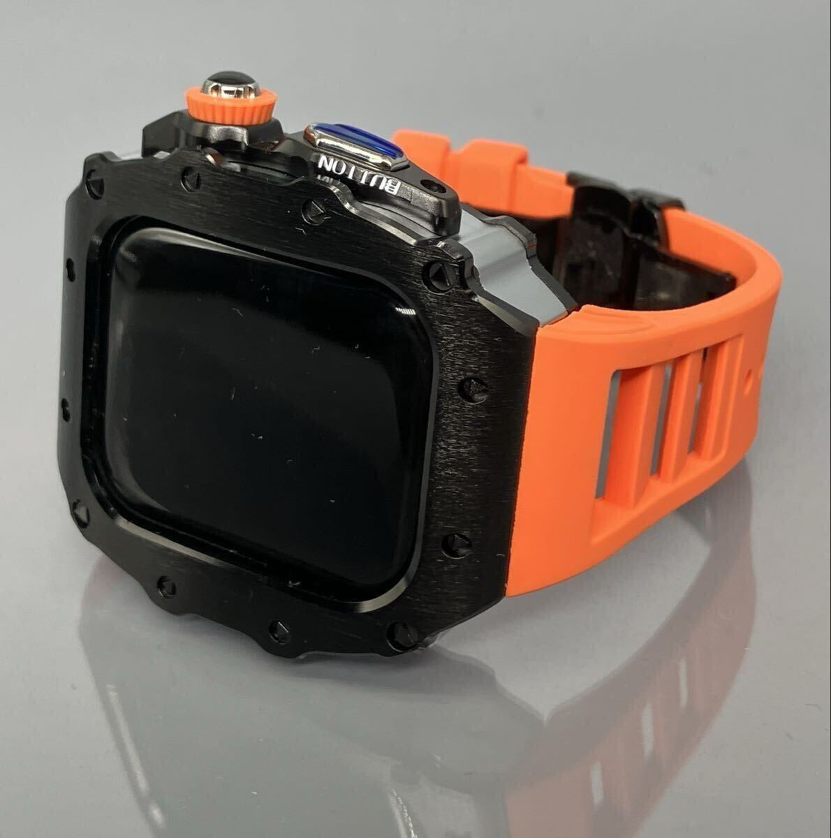 ブラック オレンジ アップルウォッチバンド カスタムパーツ ステンレス ベルト カバー ケース 46mm Apple Watch