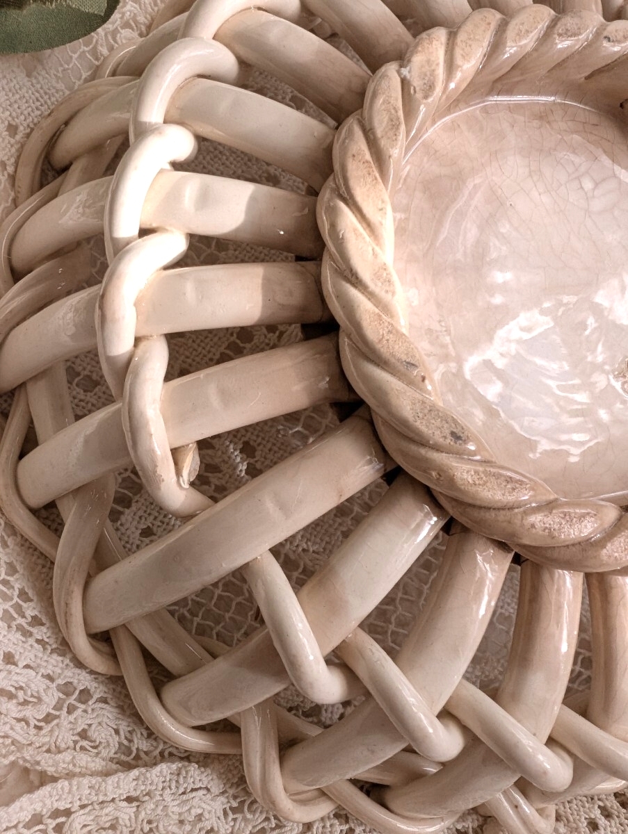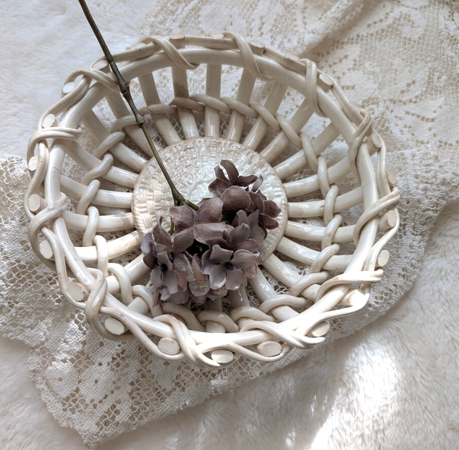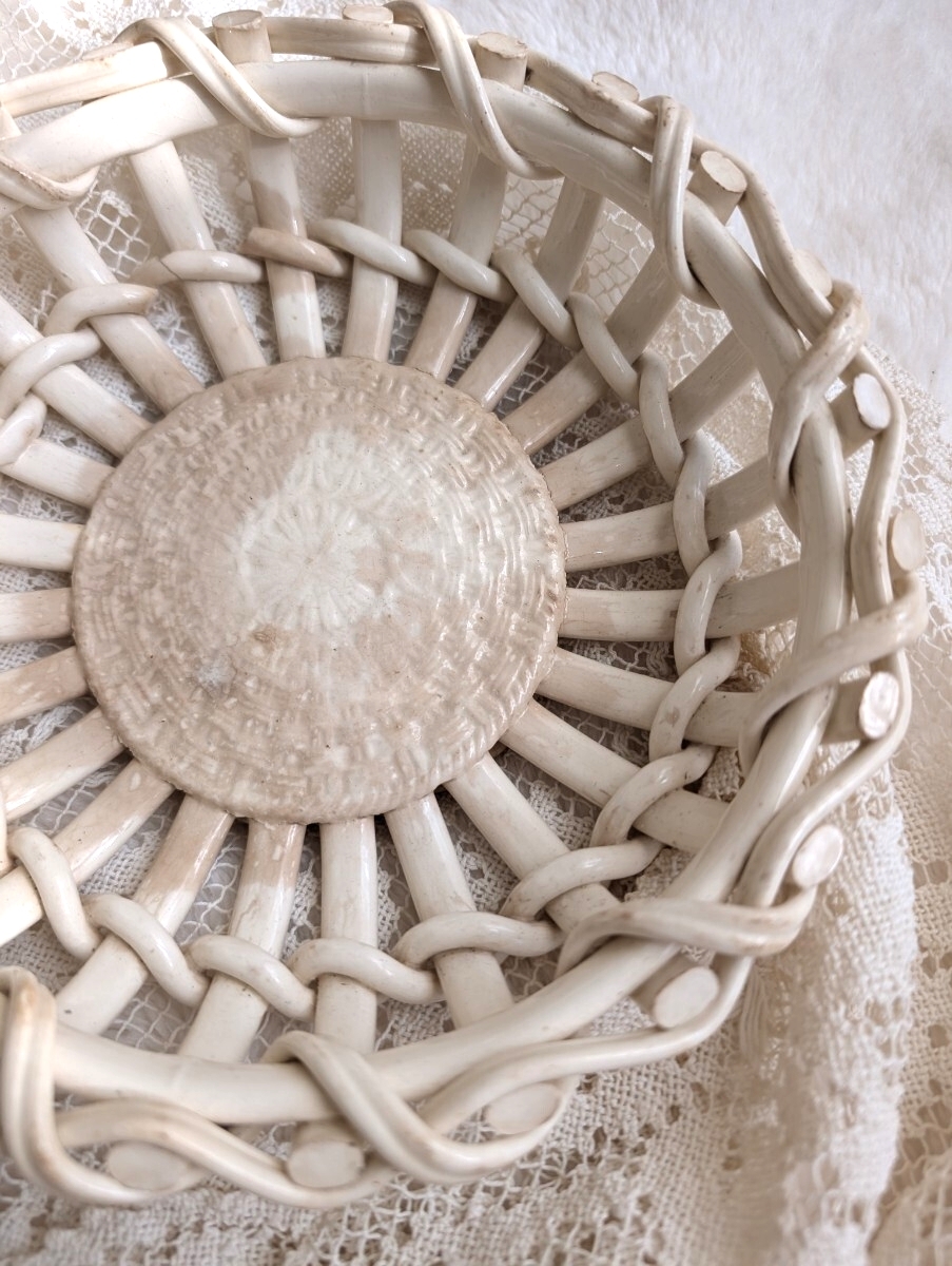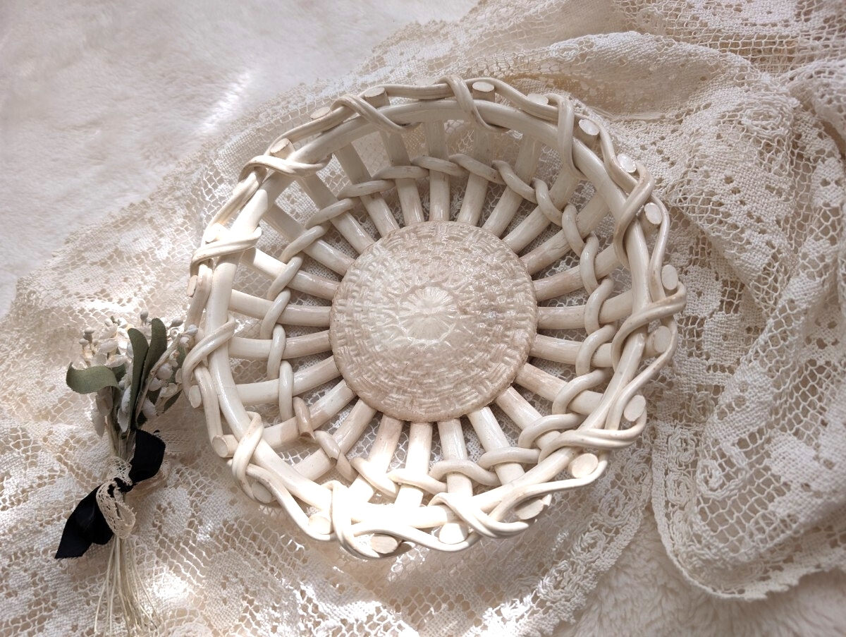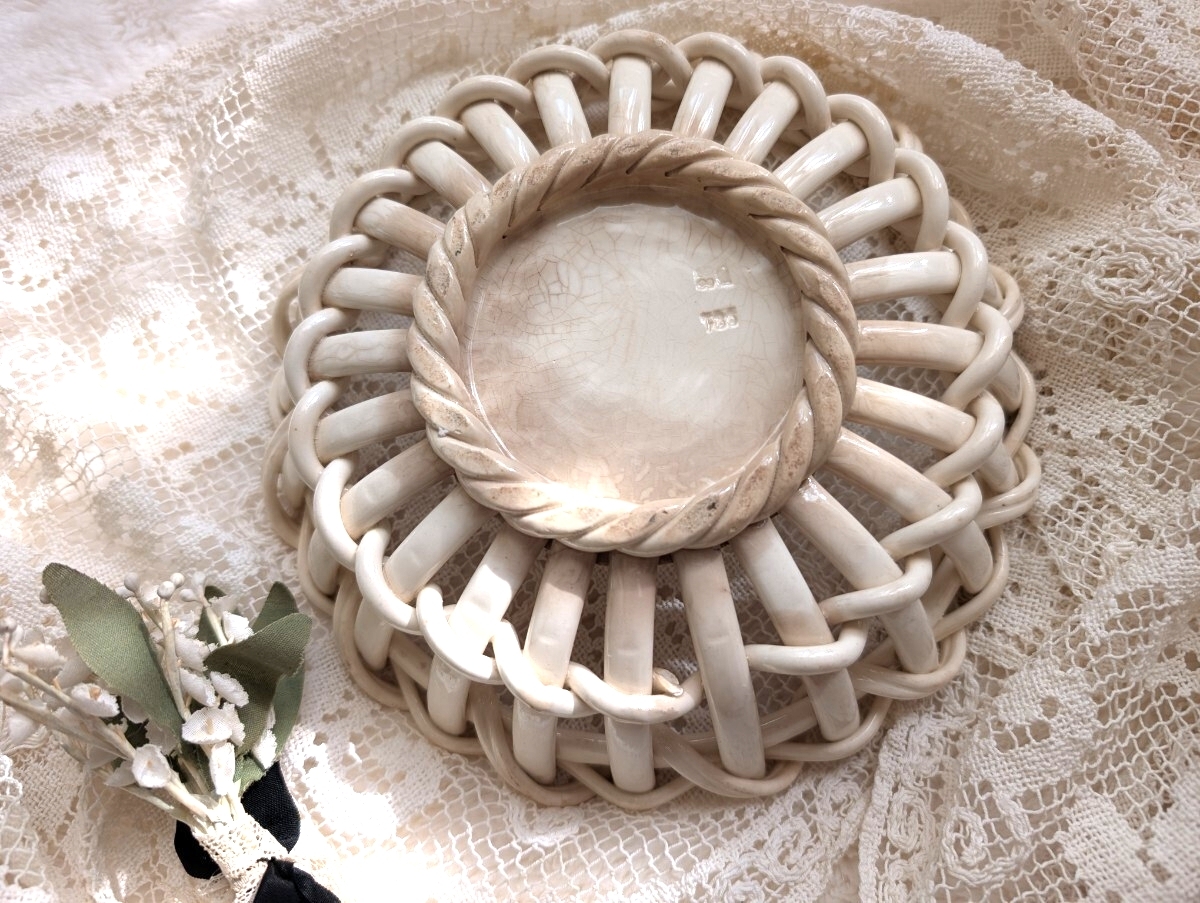 ◆ フランス アンティーク 陶器 パニエ皿 パニエプレート かご編みプレート かご編み皿 / プレート 皿 籠 パニエ