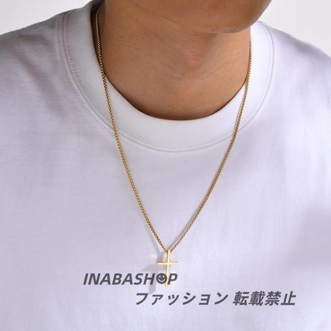 【クロスネックレス】シンプルで着用しやすいデザイン、派手過ぎず、地味過ぎない、ちょうど良い存在感が魅力のネックレス,普段使いでもフォーマルでも大活躍する、人気のメンズネックレスです。