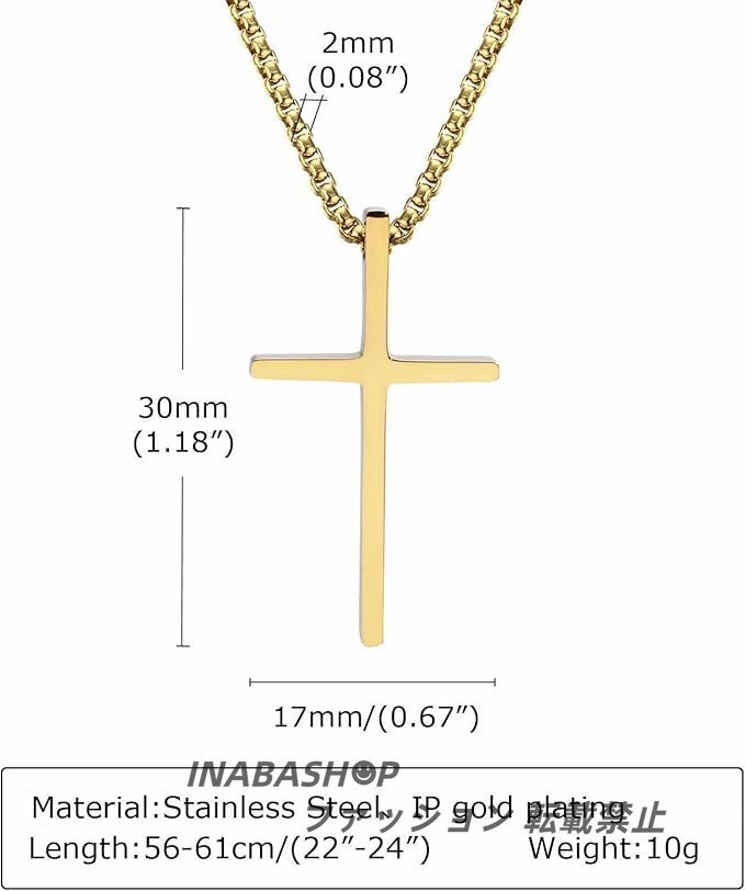 【ネックレス】金十字架 クロスネックレス メンズ ゴールド チタン チェーン 55cm+5cm 厄除け 開運ネックレス お守り