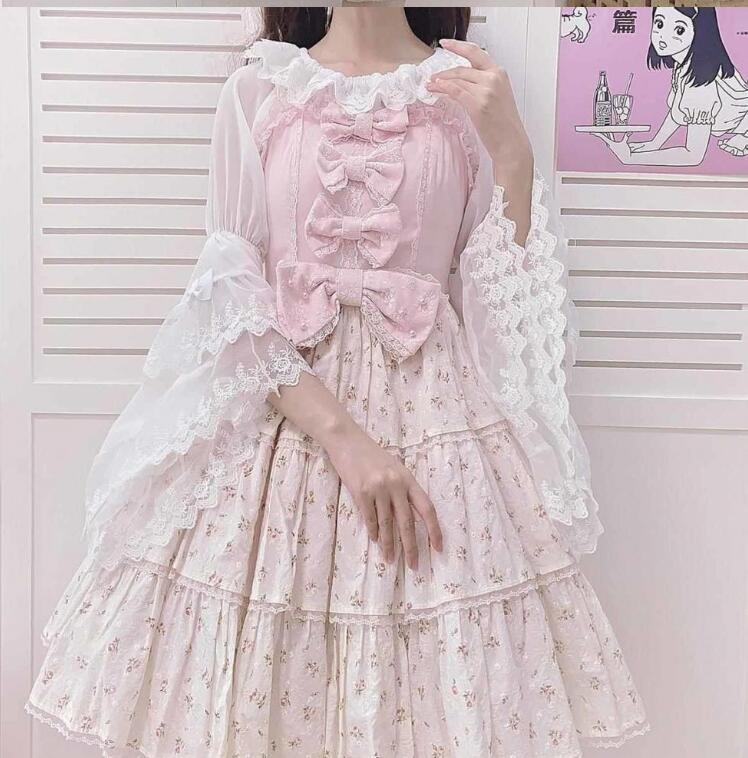 新入荷ホワイト フリルレースラウンドカラー 姫袖 ロリィタインナーブラウス ワンサイズ